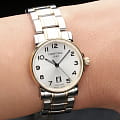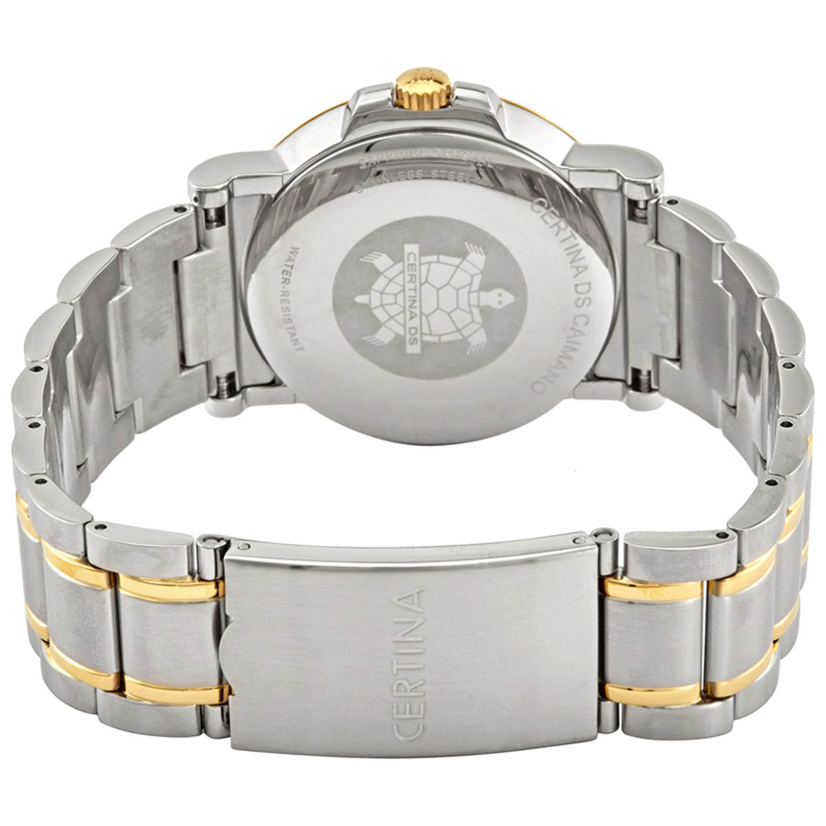 Женские швейцарские часы с сапфировым стеклом Certina DS Caimano C017.210.22.032.00, кварцевый механизм с высокой точностью. Сапфировое стеклоСапфировое стеклоПрочный и надёжный материал из кристалла сапфира синтетического происхождения, характеризующийся особой твёрдостью и устойчивостью к царапинам и повреждениям. устойчивое к появлению царапин, обладающее высокой прозрачностью. Циферблат выполнен по технологии Sunray (солнечные лучи). Узкие заостренные прямоугольные стрелки в стиле Baton с люминесцентным покрытием, которое светится в темноте после непродолжительной зарядки на свету. Метки в виде арабских цифр. Окошко даты находится в положении 6 часов. Класс водозащиты: 100 метров, позволит плавать, нырять и заниматься другими водными видами спорта. Корпус часов изготовлен из стали с PVDPVDУльтратонкое покрытие наносится в технике вакуумного напыления, сочетает в себе нитрид титана особой прочности со слоем золота или оксида хрома. Несёт в себе декоративную или защитную функцию. покрытием