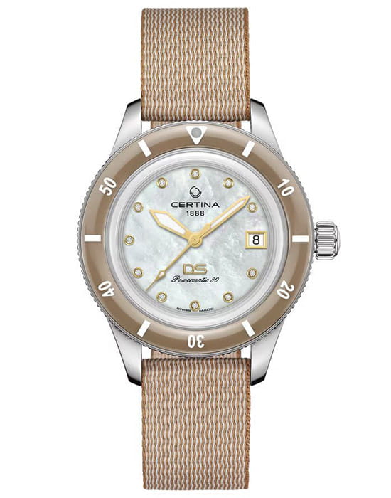 Модель Certina C036.207.18.116.00 из коллекции DS PH200M сочетает в себе элегантный дизайн и высокие технические характеристики. Корпус диаметром 39 мм выполнен из нержавеющей стали 316L, обеспечивая прочность и устойчивость к коррозии. Циферблат из белого перламутра украшен одиннадцатью бриллиантами и дополнен стрелками и индексами с покрытием из розового золота, покрытыми люминесцентным покрытиемЛюминесцентное покрытиеПозволяет считывать показания времени в темноте. Производители наносят на стрелки, часовые индексы, безель или поверхность циферблата светонакопительный состав, дающий холодное свечение. для отличной читаемости в темноте.