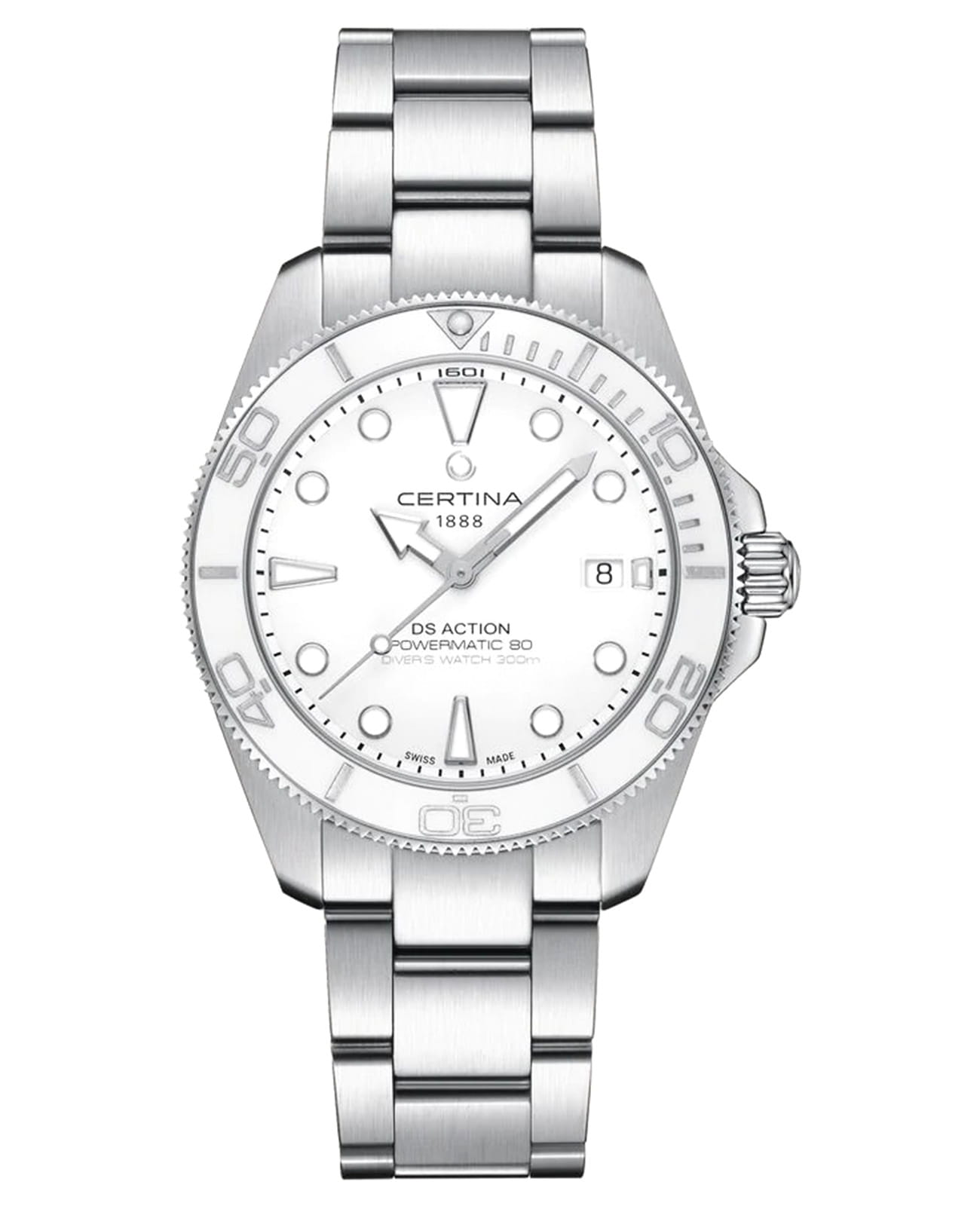 Мужские механические часы Certina DS Action C048.407.11.011.00 с автоматическим механизмом — это надёжный аксессуар, сочетающий в себе швейцарское качество и функциональность. Модель оснащена калибром POWERMATIC 80.611, обеспечивающим запас хода до 80 часов, что делает её удобной для повседневного использования. Корпус выполнен из нержавеющей стали диаметром 40,5 мм и толщиной 14,1 мм, а его поверхность защищена сапфировым стекломСапфировое стеклоПрочный и надёжный материал из кристалла сапфира синтетического происхождения, характеризующийся особой твёрдостью и устойчивостью к царапинам и повреждениям., устойчивым к царапинам и механическим повреждениям. Заводная головка с винтовым замком обеспечивает надёжную фиксацию на запястье. Браслет из стали серебристого цвета шириной 20 мм оснащён Раскладная застёжкаРаскладная застёжкаТакой тип застёжки используется только на браслетах из металла. Она никогда не раскрывается полностью, происходит разделение на 2 и более частей. Раскладывающая застёжка снизит вероятность потери часов к минимуму., обеспечивающей комфорт и надёжную фиксацию. Циферблат белого цвета дополнен точечными и батонными метками, а стрелки и индексы имеют Люминесцентное покрытиеЛюминесцентное покрытиеПозволяет считывать показания времени в темноте. Производители наносят на стрелки, часовые индексы, безель или поверхность циферблата светонакопительный состав, дающий холодное свечение., обеспечивающее отличную читаемость даже в условиях слабого освещения. Вращающийся безельБезельВнешний ободок, закрепляющий стекло. В спортивных часах так называется поворотное кольцо с делениями на циферблате, выполняет роль таймера – замеряет отрезки времени на шкале. Неподвижный безель – элемент декора. Однонаправленно вращающийся безель на дайверских часах позволяет фиксировать моменты погружения и выныривания на поверхность. с керамической вставкой добавляет модели спортивный характер. Часы водонепроницаемы более чем на 200 метров (, что позволяет использовать их при плавании и других водных активностях без глубокого погружения. Эти часы станут универсальным аксессуаром для тех, кто ценит сочетание стиля, функциональности и надёжности — идеальный выбор для повседневной носки и активного образа жизни.