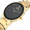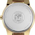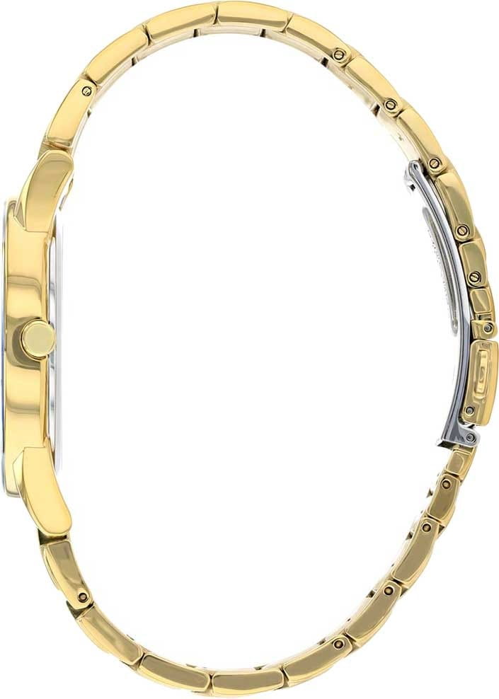 Часы Citizen AU1062-56E представлены в строгом и элегантном дизайне, идеально подходящем для делового стиля. Корпус и браслет выполнены из высококачественной нержавеющей стали с износостойким золотистым IP-покрытиемIP-покрытиеМетод ионного напыления. Демонстрирует повышенную устойчивость к истиранию, окислению и химическим веществам. Под воздействием высокого давления и температуры около 1500°C молекулы металла надёжно соединяются с частицами корпуса часов., что обеспечивает долговечность и презентабельный внешний вид. Черный циферблат с минималистичным оформлением подчеркивает сдержанность модели, а окошко даты удобно расположено в положении 3 часа. Надежный кварцевый механизм Citizen J165 работает на инновационной системе Eco-Drive, которая питается от солнечной энергии и не требует замены батарейки, обеспечивая запас хода до 270 дней. Часы оснащены функцией индикации заряда EOLEOLПредставляет собой систему, уведомляющую владельца часов о необходимости замены элемента питания. За 2 недели до полного разряда батарейки секундная стрелка перестаёт ходить чётко и начинает перепрыгивать на 3-4 деления. и защитой от перезаряда. Минеральное стеклоМинеральное стеклоМинеральное стекло представляет собой искусственно выращенный минерал кварца. Такое стекло отличается особой устойчивостью к повреждениям и царапинам. Уступает по некоторым качествам сапфировому стеклу. надежно защищает циферблат от случайных повреждений, а водозащита уровня WR30 позволяет не снимать часы при случайном контакте с водой. Диаметр корпуса составляет 40 мм, что делает модель универсальным аксессуаром для любого случая. Раскладная застёжкаРаскладная застёжкаТакой тип застёжки используется только на браслетах из металла. Она никогда не раскрывается полностью, происходит разделение на 2 и более частей. Раскладывающая застёжка снизит вероятность потери часов к минимуму. на браслете обеспечивает дополнительный комфорт при носке.