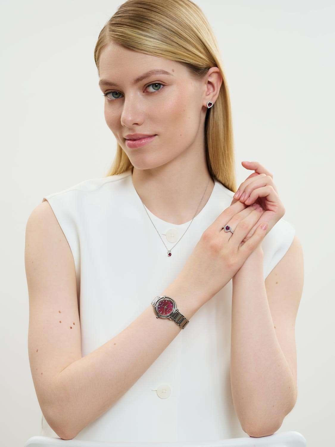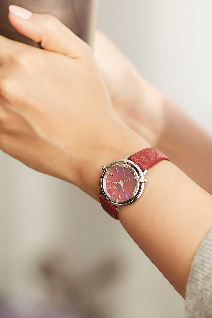 Часы Citizen EM1090-78X – это элегантная модель, созданная в Японии и сочетающая в себе современные технологии и изысканный дизайн. Надежный кварцевый механизм Citizen E031 с инновационной системой Eco-Drive работает от солнечной энергии и не требует замены батарейки, обеспечивая запас хода до 180 дней. Корпус часов выполнен из нержавеющей стали и украшен тремя кристаллами, что придает аксессуару особое сияние. Перламутровый бордовый циферблат с лаконичными метками защищен выпуклым сапфировым стекломСапфировое стеклоПрочный и надёжный материал из кристалла сапфира синтетического происхождения, характеризующийся особой твёрдостью и устойчивостью к царапинам и повреждениям., устойчивым к царапинам. Заводная головка декорирована камнем в форме кабошона, а задняя крышка закреплена на четырех винтах. Стальной браслет оснащен застежкой «бабочка»Застёжка "бабочка"Такой вид застёжки дополняется предохранителями, помогающими избежать случайного раскрытия браслета. Обладают изящным исполнением. и системой быстрой замены, что позволяет легко менять стиль часов в зависимости от вашего настроения. В комплекте также идет сменный бордовый ремешок с такой же застежкой. Водозащита 50WR позволяет не беспокоиться о случайном контакте с водой. Компактные размеры корпуса (диаметр 31,2 мм, толщина 7,8 мм, вес 71 г) обеспечивают комфортное ношение каждый день. Эти часы станут великолепным дополнением к любому образу и подчеркнут вашу индивидуальность.