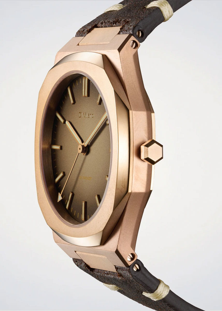 Часы D1 Milano Automatico BZLJ01 — это эффектные механические мужские часы, разработанные для ценителей уникальных аксессуаров. Их утонченный дизайн и высокое качество исполнения делают эти часы незаменимым элементом вашего стиля. Изготовленные в Италии, они оснащены надежным механизмом Miyota 9039 с автоподзаводом, обеспечивающими запас хода до 42 часа. Частота работы механизма составляет 28800 полуколебаний в час. Часы имеют корпус из бронзы, диаметром 40 мм, что гарантирует долговечность и стойкость к внешним воздействиям.Циферблат защищен сапфировым стекломСапфировое стеклоПрочный и надёжный материал из кристалла сапфира синтетического происхождения, характеризующийся особой твёрдостью и устойчивостью к царапинам и повреждениям. с антибликовым покрытиемАнтибликовое покрытиеСлой оксида металла в 0,13-0,3 микрон, благодаря которому стекло часов не бликует и не отражает свет. Антибликовое покрытие уменьшает отражение света в 10 раз, обеспечивая отличную читаемость показателей циферблата., подчеркивающим элегантность и изысканность модели и защищает от царапин. Стрелки с люминесцентным покрытиемЛюминесцентное покрытиеПозволяет считывать показания времени в темноте. Производители наносят на стрелки, часовые индексы, безель или поверхность циферблата светонакопительный состав, дающий холодное свечение.. Метки в виде штрихов придают часам особый шарм. Кожаный ремешок на стандартной застёжке обеспечивает комфортное и надежное ношение. Водозащита до 50 WR делает эти часы подходящими для повседневного использования.