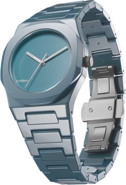 Часы D1 Milano Ceramic Pure Indigo CEBU05 – роскошный аксессуар для современных женщин и мужчин. Кварцевые часы с корпусом из голубой керамики. Минималистичный дизайн циферблата, защищенный прочным сапфировым стекломСапфировое стеклоПрочный и надёжный материал из кристалла сапфира синтетического происхождения, характеризующийся особой твёрдостью и устойчивостью к царапинам и повреждениям. с антибликовым покрытиемАнтибликовое покрытиеСлой оксида металла в 0,13-0,3 микрон, благодаря которому стекло часов не бликует и не отражает свет. Антибликовое покрытие уменьшает отражение света в 10 раз, обеспечивая отличную читаемость показателей циферблата., привлекает внимание своей сдержанной красотой. Циферблат лаконичный, без индексов, с надписью бренда. Изысканные стрелки из латуни с люминесцентным покрытиемЛюминесцентное покрытиеПозволяет считывать показания времени в темноте. Производители наносят на стрелки, часовые индексы, безель или поверхность циферблата светонакопительный состав, дающий холодное свечение.. Стальная задняя крышка с PVD-покрытиемPVDУльтратонкое покрытие наносится в технике вакуумного напыления, сочетает в себе нитрид титана особой прочности со слоем золота или оксида хрома. Несёт в себе декоративную или защитную функцию. закреплена на 4 винтах, что обеспечивает надежность конструкции. Элегантный керамический браслет с застёжкой «бабочка» с кнопкамиЗастёжка "бабочка"Такой вид застёжки дополняется предохранителями, помогающими избежать случайного раскрытия браслета. Обладают изящным исполнением. .  Водозащита 50 метров защищает часы от брызг и дождя, делая их подходящими для повседневного использования. Часы сочетают в себе классический дизайн и современные технологии производства.