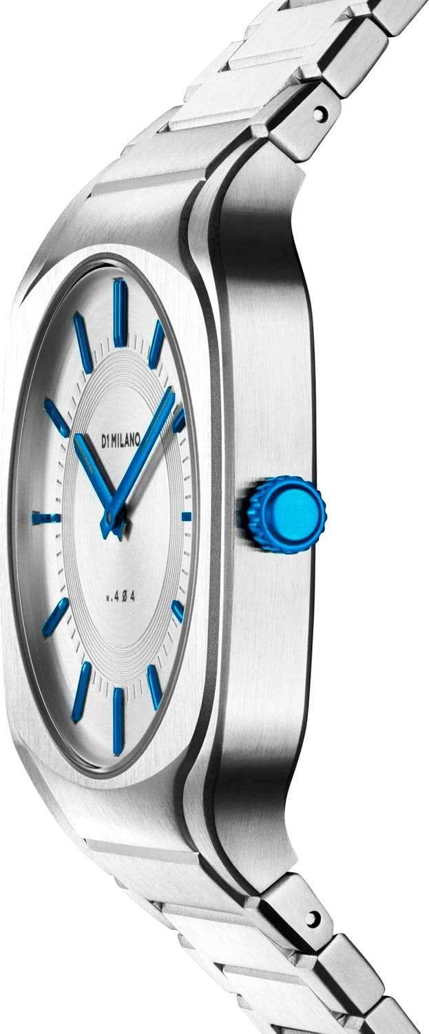 Часы D1 Milano SQBJ01 — это уникальные кварцевые часы, которые подчеркнут ваш изысканный стиль. Эти наручные часы с эффектным монохромным дизайном станут выразительным акцентом вашего образа. Квадратный корпус из стали с сатинированной отделкой и габаритами 37х37 мм придает часам современный и утонченный вид. Серый циферблат, выполненный по технологии Sunray, украшен накладными метками в виде штрихов, а синие хроматические стрелки и индексы создают стильный контраст, подчёркивая элегантность модели. Задняя крышка из нержавеющей стали закреплена на 4-х винтах и дополнена индивидуальным серийным номером, что подчеркивает уникальность каждого экземпляра. Стальной браслет с раскладной застёжкойРаскладная застёжкаТакой тип застёжки используется только на браслетах из металла. Она никогда не раскрывается полностью, происходит разделение на 2 и более частей. Раскладывающая застёжка снизит вероятность потери часов к минимуму. обеспечивает надежность и комфорт в повседневном использовании. Сапфировое стеклоСапфировое стеклоПрочный и надёжный материал из кристалла сапфира синтетического происхождения, характеризующийся особой твёрдостью и устойчивостью к царапинам и повреждениям. с антибликовым покрытием защищает циферблат, а водозащита до 50WR делает эти часы практичным выбором для любых условий. Благодаря калибру Miyota 1L22, они отличаются точностью и надежностью. Эти итальянские часы представляют собой идеальное сочетание традиционного мастерства и инновационного подхода, воплощая в себе новый взгляд на классическую элегантность.
