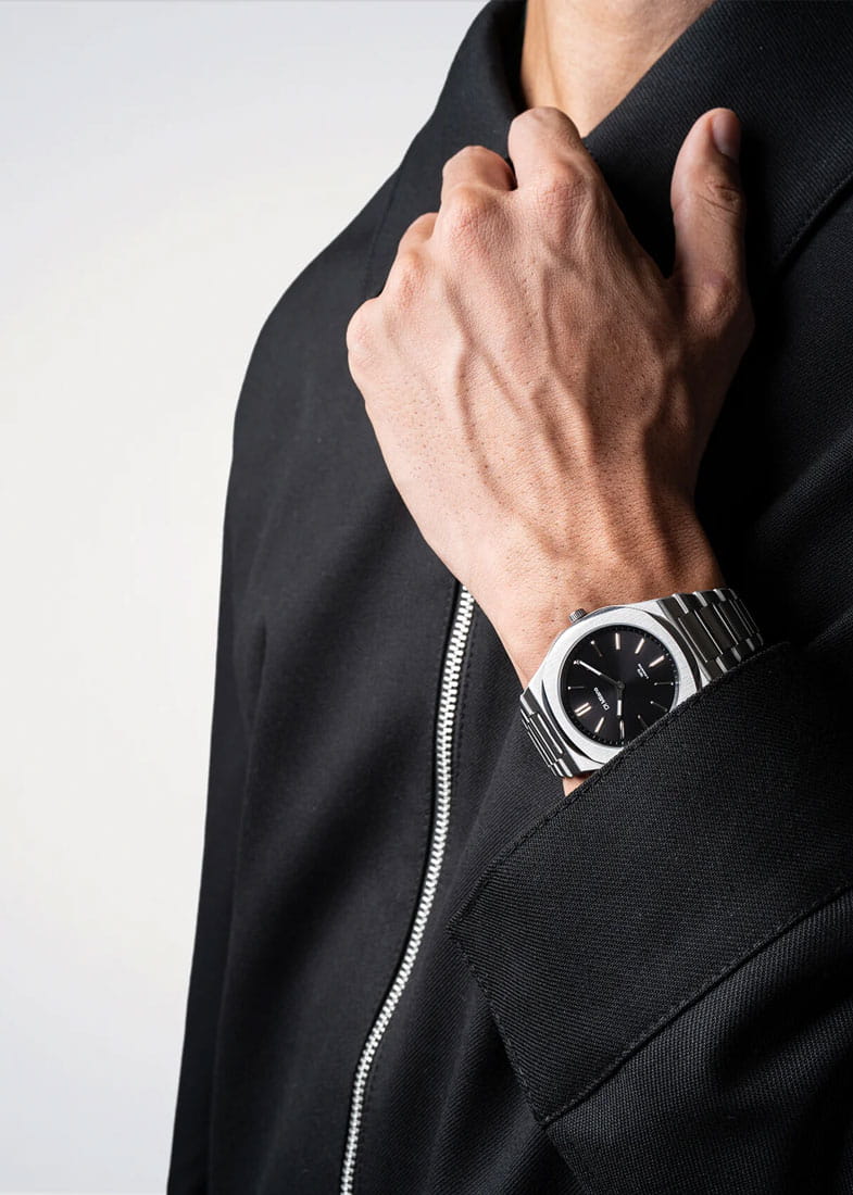 Мужские кварцевые часы D1 Milano Ultra Thin UHBJ01 — это стильное сочетание элегантности и современного дизайна. Изящный ультратонкий корпус выполнен из нержавеющей стали, диаметром 39 мм, что придаст образу элегантности и надежности. Изысканный циферблат с метками в виде штрихов придает модели особый блеск. Циферблат защищен сапфировым стекломСапфировое стеклоПрочный и надёжный материал из кристалла сапфира синтетического происхождения, характеризующийся особой твёрдостью и устойчивостью к царапинам и повреждениям. с антибликовым покрытиемАнтибликовое покрытиеСлой оксида металла в 0,13-0,3 микрон, благодаря которому стекло часов не бликует и не отражает свет. Антибликовое покрытие уменьшает отражение света в 10 раз, обеспечивая отличную читаемость показателей циферблата., обеспечивающий устойчивость к царапинам. Стрелки с люминесцентным покрытиемЛюминесцентное покрытиеПозволяет считывать показания времени в темноте. Производители наносят на стрелки, часовые индексы, безель или поверхность циферблата светонакопительный состав, дающий холодное свечение.. Часы оснащены надежным кварцевым механизмом. Стальной браслет на застёжке-бабочке с кнопкамиЗастёжка "бабочка"Такой вид застёжки дополняется предохранителями, помогающими избежать случайного раскрытия браслета. Обладают изящным исполнением. , гарантирует комфортное и безопасное ношение. Класс водозащиты: 50 метров позволит защитить корпус от случайных брызг или капель дождя. Отличный выбор для тех, кто ценит утонченность и качество.