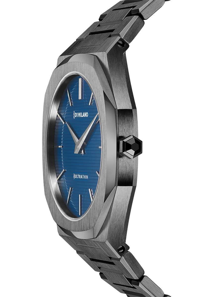 Часы D1 Milano UTBJ12 — это уникальные кварцевые часы, которые подчеркнут ваш изысканный стиль. Эти наручные часы из коллекции Ultra Thin с эффектным монохромным дизайном станут выразительным акцентом вашего образа. Корпус диаметром 40 мм из нержавеющей стали с PVDPVDУльтратонкое покрытие наносится в технике вакуумного напыления, сочетает в себе нитрид титана особой прочности со слоем золота или оксида хрома. Несёт в себе декоративную или защитную функцию. придает часам современный и утонченный вид. Синий циферблат метками в виде штрихов, а серебристые хроматические стрелки и индексы создают стильный контраст, подчёркивая элегантность модели. Задняя крышка из нержавеющей стали закреплена на 8-х винтах и дополнена индивидуальным серийным номером, что подчеркивает уникальность каждого экземпляра. Стальной браслет с PVDPVDУльтратонкое покрытие наносится в технике вакуумного напыления, сочетает в себе нитрид титана особой прочности со слоем золота или оксида хрома. Несёт в себе декоративную или защитную функцию. и с раскладной застёжкойРаскладная застёжкаТакой тип застёжки используется только на браслетах из металла. Она никогда не раскрывается полностью, происходит разделение на 2 и более частей. Раскладывающая застёжка снизит вероятность потери часов к минимуму. обеспечивает надежность и комфорт в повседневном использовании. Сапфировое стеклоСапфировое стеклоПрочный и надёжный материал из кристалла сапфира синтетического происхождения, характеризующийся особой твёрдостью и устойчивостью к царапинам и повреждениям. с антибликовым покрытием защищает циферблат, а водозащита до 50WR делает эти часы практичным выбором для любых условий. Благодаря калибру Miyota 1L22, они отличаются точностью и надежностью. Эти итальянские часы представляют собой идеальное сочетание традиционного мастерства и инновационного подхода, воплощая в себе новый взгляд на классическую элегантность.
