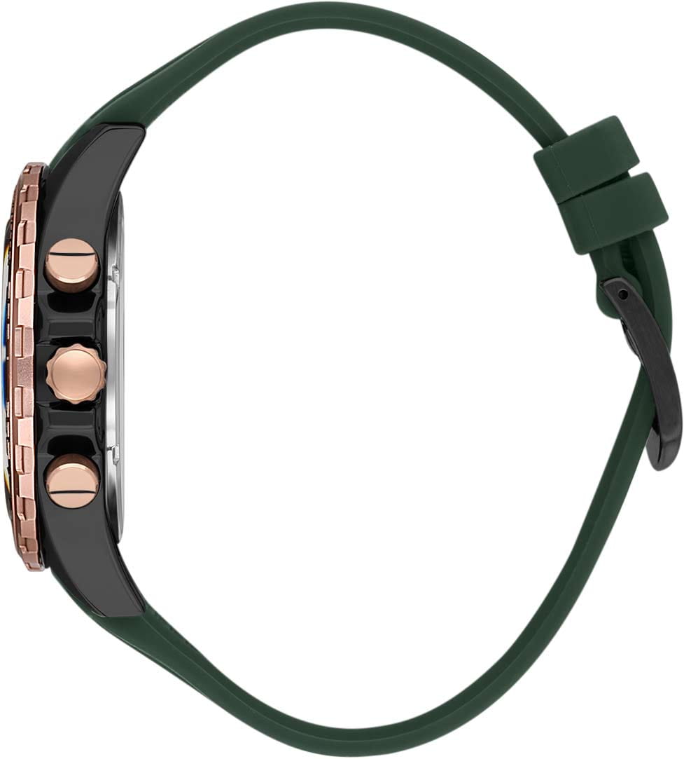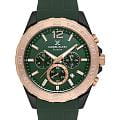 Мужские кварцевые часы-хронограф Daniel Klein — это удобный и многофункциональный аксессуар. Корпус диаметром 44 мм выполнен из металла с IP-покрытиемIP-покрытиеМетод ионного напыления. Демонстрирует повышенную устойчивость к истиранию, окислению и химическим веществам. Под воздействием высокого давления и температуры около 1500°C молекулы металла надёжно соединяются с частицами корпуса часов.. Циферблат зелёного цвета выполнен по технологии Sunray («солнечные лучи») и оформлен штрихами, арабской цифрой 12, стрелками и тремя субциферблатами хронографа. Присутствуют индикаторы 24-часового формата времени и тахиметрТахиметрРазмеченная шкала, располагается на ободке или безеле часов. Тахиметр позволяет рассчитать скорость на определённом участке пути, расстояние измеряется в километрах или милях. на безеле. Окошко даты расположено между 4 и 5 часами. Стрелки и метки с люминесцентным покрытиемЛюминесцентное покрытиеПозволяет считывать показания времени в темноте. Производители наносят на стрелки, часовые индексы, безель или поверхность циферблата светонакопительный состав, дающий холодное свечение., обеспечивающим хорошую читаемость в темноте. Циферблат защищён минеральным стекломМинеральное стеклоМинеральное стекло представляет собой искусственно выращенный минерал кварца. Такое стекло отличается особой устойчивостью к повреждениям и царапинам. Уступает по некоторым качествам сапфировому стеклу.. Заводная головка рифлёная, с защитой. Часы оснащены силиконовым ремешком на классической пряжке. Водонепроницаемость 50 м позволяет использовать часы в повседневных условиях. Идеальный выбор для тех, кто ценит турецкое качество и универсальный дизайн.