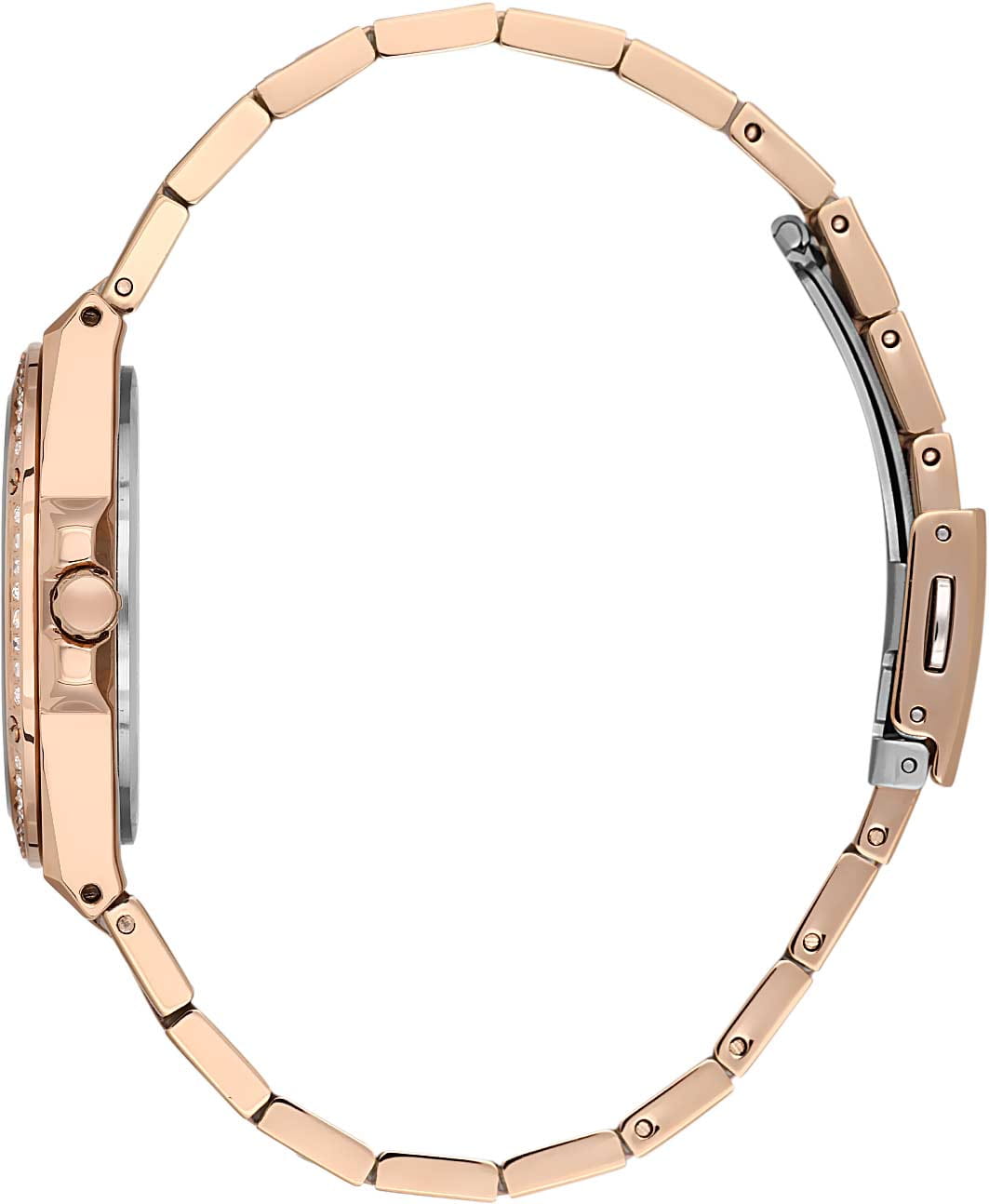 Женские кварцевые часы Daniel Klein — это изысканный аксессуар, завершающий безупречный образ. Корпус диаметром 35 мм выполнен из металла с IP-покрытиемIP-покрытиеМетод ионного напыления. Демонстрирует повышенную устойчивость к истиранию, окислению и химическим веществам. Под воздействием высокого давления и температуры около 1500°C молекулы металла надёжно соединяются с частицами корпуса часов. цвета розового золота. БезельБезельВнешний ободок, закрепляющий стекло. В спортивных часах так называется поворотное кольцо с делениями на циферблате, выполняет роль таймера – замеряет отрезки времени на шкале. Неподвижный безель – элемент декора. Однонаправленно вращающийся безель на дайверских часах позволяет фиксировать моменты погружения и выныривания на поверхность. с декоративными винтами инкрустирован кристаллами. Циферблат розового цвета гильошированный, оформлен штрихами, римскими цифрами и стрелками с люминесцентным покрытиемЛюминесцентное покрытиеПозволяет считывать показания времени в темноте. Производители наносят на стрелки, часовые индексы, безель или поверхность циферблата светонакопительный состав, дающий холодное свечение.. Присутствуют отдельные индикаторы дня недели и даты, а также 24-часовой формат времени. Циферблат защищён минеральным стекломМинеральное стеклоМинеральное стекло представляет собой искусственно выращенный минерал кварца. Такое стекло отличается особой устойчивостью к повреждениям и царапинам. Уступает по некоторым качествам сапфировому стеклу.. Механизм — японский кварцевый, калибр Seiko TMI Epson VX3JE1. Заводная головка рифлёная, с защитой. Часы оснащены стальным браслетом с IP-покрытиемIP-покрытиеМетод ионного напыления. Демонстрирует повышенную устойчивость к истиранию, окислению и химическим веществам. Под воздействием высокого давления и температуры около 1500°C молекулы металла надёжно соединяются с частицами корпуса часов. на раскладной застёжкеРаскладная застёжкаТакой тип застёжки используется только на браслетах из металла. Она никогда не раскрывается полностью, происходит разделение на 2 и более частей. Раскладывающая застёжка снизит вероятность потери часов к минимуму.. Водонепроницаемость 30 м позволяет использовать часы в повседневных условиях. Идеальный выбор для тех, кто ценит турецкое качество и элегантный дизайн.