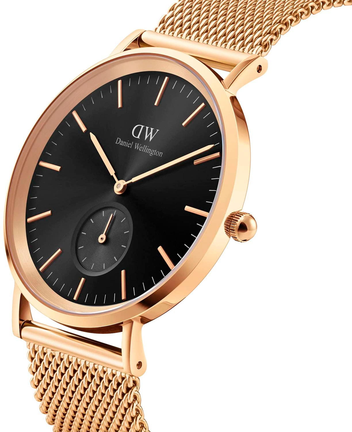 Ультратонкие мужские наручные часы Daniel Wellington Classic Multi-Eye Evergold Onyx DW00100713 с минеральным стекломМинеральное стеклоМинеральное стекло представляет собой искусственно выращенный минерал кварца. Такое стекло отличается особой устойчивостью к повреждениям и царапинам. Уступает по некоторым качествам сапфировому стеклу., кварцевый механизм с высокой точностью. Корпус часов изготовлен из стали с PVD-покрытиемPVDУльтратонкое покрытие наносится в технике вакуумного напыления, сочетает в себе нитрид титана особой прочности со слоем золота или оксида хрома. Несёт в себе декоративную или защитную функцию.. Класс водозащиты: 30 метров, позволит защитить корпус от случайных брызг или капель дождя. Стальной браслет миланского плетения с PVD-покрытиемPVDУльтратонкое покрытие наносится в технике вакуумного напыления, сочетает в себе нитрид титана особой прочности со слоем золота или оксида хрома. Несёт в себе декоративную или защитную функцию. на раскладном замкеРаскладной замокДанный вариант застежки используется только на часах с металлическим браслетом. Отличительная особенность такого крепления в том, что длина браслета становится универсальной и вы можете самостоятельно отрегулировать нужный вам размер – застежка просто двигается по браслету часов.. Секундная стрелка вынесена на отдельный циферблат.