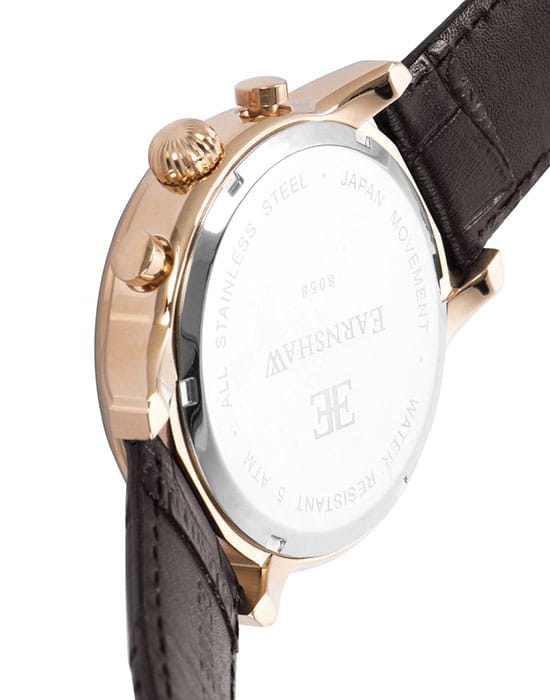 Мужские наручные часы Earnshaw ES-8058-02 по достоинству оценят истинные почитатели элегантного облика вещей. Модель отражает собой классический британский стиль, каждой детали уделено особое внимание. Аксессуар идеально смотрится на запястье, любой образ, дополненный часами Earnshaw, станет гармоничным и целостным. Явно прослеживается соединение английских традиций и швейцарской точности механизмов, отшлифованное инновационными японскими технологиями. Модель сохраняет свой безупречный вид на долгие года, что возможно благодаря использованию современных прочных материалов и тщательной проверке каждого этапа производства и сборки.