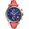 Наручные часы от популярного американского бренда Fossil - они будут замечательно смотреться как с повседневным стилем одежды, так и костюмом; браслет: кожа; корпус: сталь; цвет браслета: красный; цвет корпуса: розовое золото; цвет циферблата: синий; ширина браслета: 18MM; водонепроницаемость: 5 ATM; диаметр корпуса: 38MM