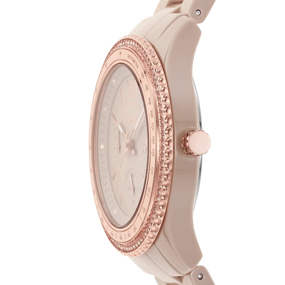 Женские наручные часы Fossil на браслете Fossil FB-01 CE1112, кварцевый механизм с высокой точностью. Класс водозащиты: 50 метров, позволит защитить корпус от случайных брызг или капель дождя. Корпус часов изготовлен из керамики, золотистого цвета.