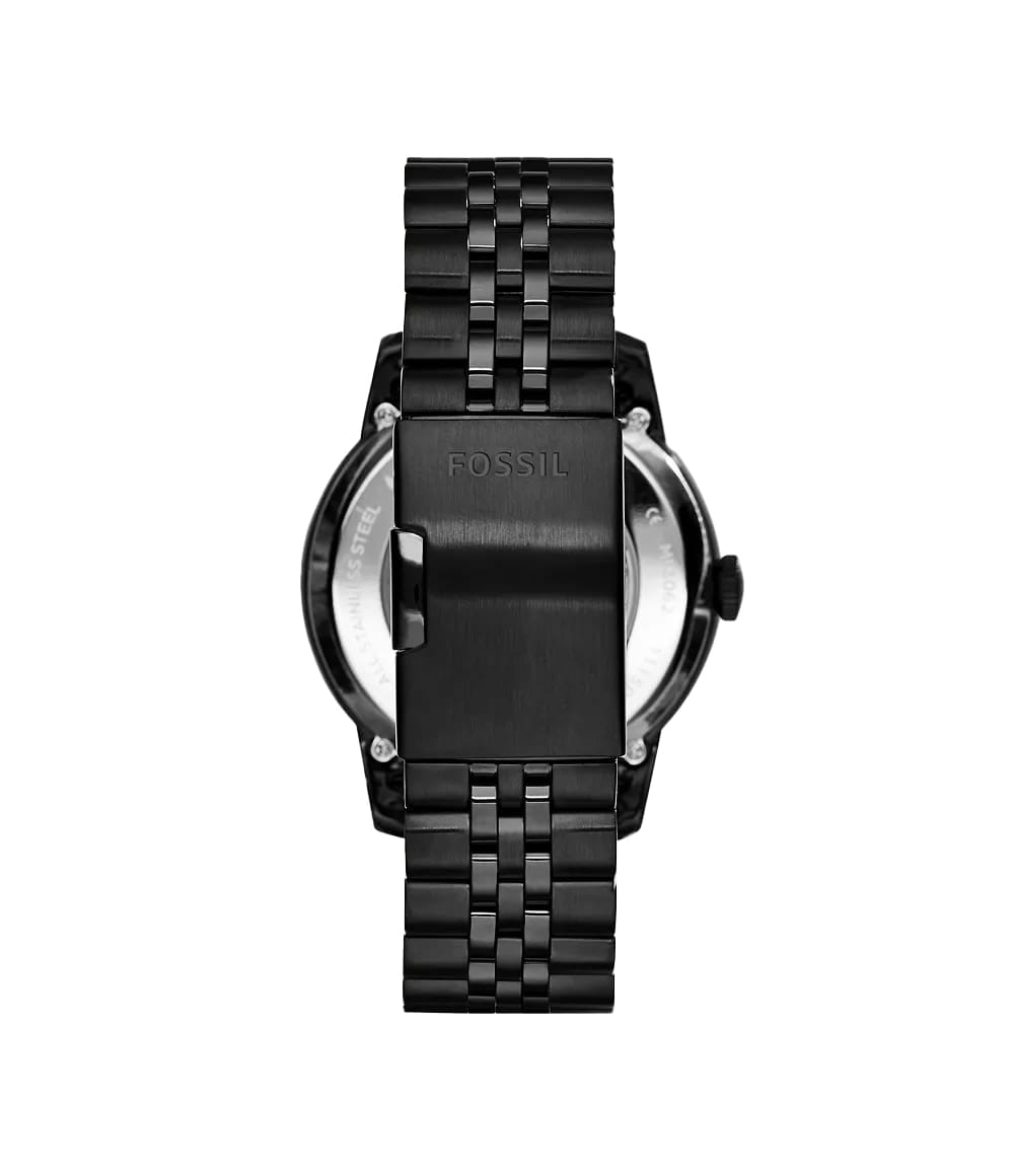 Мужские механические наручные часы с автоподзаводом Fossil Townsman Automatic ME3062. Корпус часов изготовлен из нержавеющей стали с PVD-покрытиемPVDУльтратонкое покрытие наносится в технике вакуумного напыления, сочетает в себе нитрид титана особой прочности со слоем золота или оксида хрома. Несёт в себе декоративную или защитную функцию.. Минеральное стеклоМинеральное стеклоМинеральное стекло представляет собой искусственно выращенный минерал кварца. Такое стекло отличается особой устойчивостью к повреждениям и царапинам. Уступает по некоторым качествам сапфировому стеклу. устойчивое к появлению царапин, обладающее высокой прозрачностью. Водозащита: 50 метров, позволит защитить корпус от случайных брызг или капель дождя. Стальной браслет с PVD-покрытиемPVDУльтратонкое покрытие наносится в технике вакуумного напыления, сочетает в себе нитрид титана особой прочности со слоем золота или оксида хрома. Несёт в себе декоративную или защитную функцию. на раскладной застёжкеРаскладная застёжкаТакой тип застёжки используется только на браслетах из металла. Она никогда не раскрывается полностью, происходит разделение на 2 и более частей. Раскладывающая застёжка снизит вероятность потери часов к минимуму..