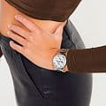 Модель станет изящным украшением повседневного, делового, торжественного наряда. Стильно смотрится мерцающий брендированный циферблат, безельБезельВнешний ободок, закрепляющий стекло. В спортивных часах так называется поворотное кольцо с делениями на циферблате, выполняет роль таймера – замеряет отрезки времени на шкале. Неподвижный безель – элемент декора. Однонаправленно вращающийся безель на дайверских часах позволяет фиксировать моменты погружения и выныривания на поверхность. декорирован сияющими кристаллами. Корпус и браслет выполнены из стали 316L, отличающейся долговечностью и устойчивостью к коррозии. Минеральное стекло не допускает появления царапин на поверхности.