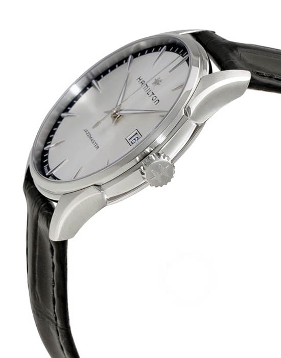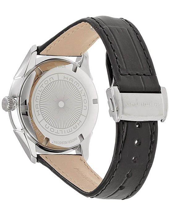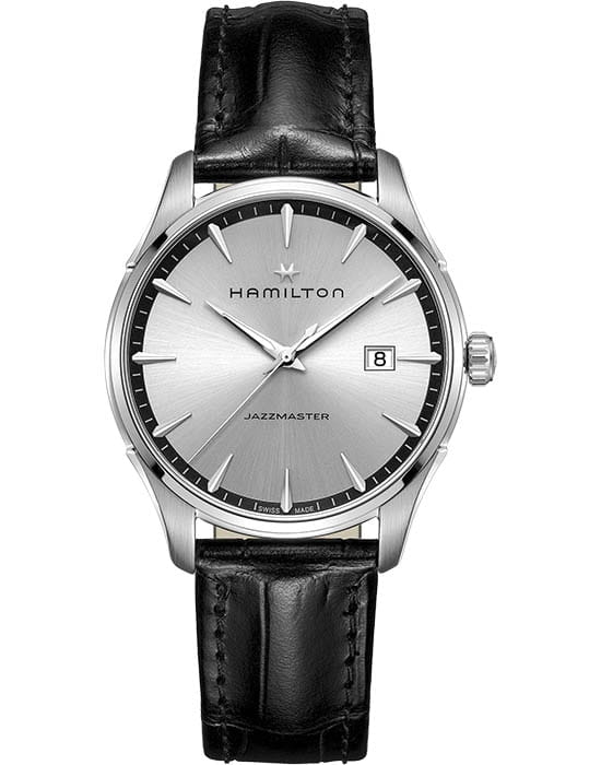 Мужские швейцарские часы Hamilton Jazzmaster Gent Quartz H32451751, кварцевый механизм с высокой точностью. Сапфировое стеклоСапфировое стеклоПрочный и надёжный материал из кристалла сапфира синтетического происхождения, характеризующийся особой твёрдостью и устойчивостью к царапинам и повреждениям. устойчивое к появлению царапин, обладающее высокой прозрачностью. Класс водозащиты: 50 метров, позволит защитить корпус от случайных брызг или капель дождя. Корпус часов изготовлен из нержавеющей стали. Стрелки и метки с люминесцентным покрытиемЛюминесцентное покрытиеПозволяет считывать показания времени в темноте. Производители наносят на стрелки, часовые индексы, безель или поверхность циферблата светонакопительный состав, дающий холодное свечение.. Кожаный ремешок на раскладной застёжкеРаскладная застёжкаТакой тип застёжки используется только на браслетах из металла. Она никогда не раскрывается полностью, происходит разделение на 2 и более частей. Раскладывающая застёжка снизит вероятность потери часов к минимуму.. Окошко даты находится в положении трёх часов.