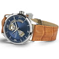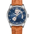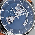 Мужские часы-скелетоны Hamilton Jazzmaster Open Heart Auto H32705541 с автоматическим механизмом Н-10. Корпус часов изготовлен из нержавеющей стали. Стрелки и метки с люминесцентным покрытиемЛюминесцентное покрытиеПозволяет считывать показания времени в темноте. Производители наносят на стрелки, часовые индексы, безель или поверхность циферблата светонакопительный состав, дающий холодное свечение.. Сапфировое стеклоСапфировое стеклоПрочный и надёжный материал из кристалла сапфира синтетического происхождения, характеризующийся особой твёрдостью и устойчивостью к царапинам и повреждениям. с антибликовым покрытием. Практичный кожаный ремешок с раскладной застёжкойРаскладная застёжкаТакой тип застёжки используется только на браслетах из металла. Она никогда не раскрывается полностью, происходит разделение на 2 и более частей. Раскладывающая застёжка снизит вероятность потери часов к минимуму.. Уровень влагозащиты: 50 метров, позволит защитить корпус от случайных брызг или капель дождя.