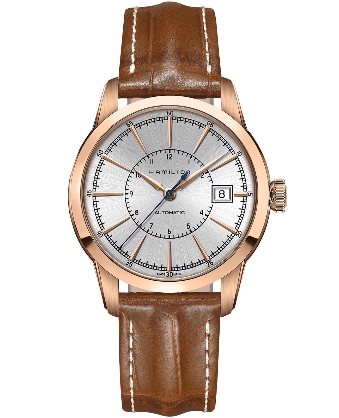 Мужские механические швейцарские часы с прозрачной задней крышкой Hamilton American Classic Railroad Auto H40505551, механический механизм (автоматический калибр) с высокой точностью. Сапфировое стеклоСапфировое стеклоПрочный и надёжный материал из кристалла сапфира синтетического происхождения, характеризующийся особой твёрдостью и устойчивостью к царапинам и повреждениям. устойчивое к появлению царапин, обладающее высокой прозрачностью. Класс водозащиты: 50 метров, позволит защитить корпус от случайных брызг или капель дождя. Корпус часов изготовлен из стали с PVD-покрытиемPVDУльтратонкое покрытие наносится в технике вакуумного напыления, сочетает в себе нитрид титана особой прочности со слоем золота или оксида хрома. Несёт в себе декоративную или защитную функцию.. Кожаный ремешок с раскладной застёжкойРаскладная застёжкаТакой тип застёжки используется только на браслетах из металла. Она никогда не раскрывается полностью, происходит разделение на 2 и более частей. Раскладывающая застёжка снизит вероятность потери часов к минимуму.. Окошко даты находится в положении 3 часа.