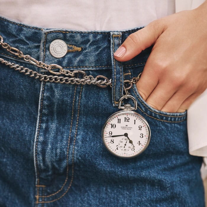 Перенеситесь на 130 лет вперед с помощью наших карманных механических часов Railroad. Специальное издание, ограниченное 917 экземплярами, посвящено Hamilton как "часам железнодорожной точности". Сапфировое стеклоСапфировое стеклоПрочный и надёжный материал из кристалла сапфира синтетического происхождения, характеризующийся особой твёрдостью и устойчивостью к царапинам и повреждениям. защищает белый циферблат, покрытый эмалью. Все метки и увеличенные арабские цифры очень чёткие, яркие, с отличной читаемостью. На верхней части корпуса расположена выдвижная заводная головка с рифлёной поверхность, защищённая планкой. К ней можно прикрепить цепочку, входящую в комплект. На задней крышке нанесена гравировка с поездом и надписью «130th Anniversary Railway Special».