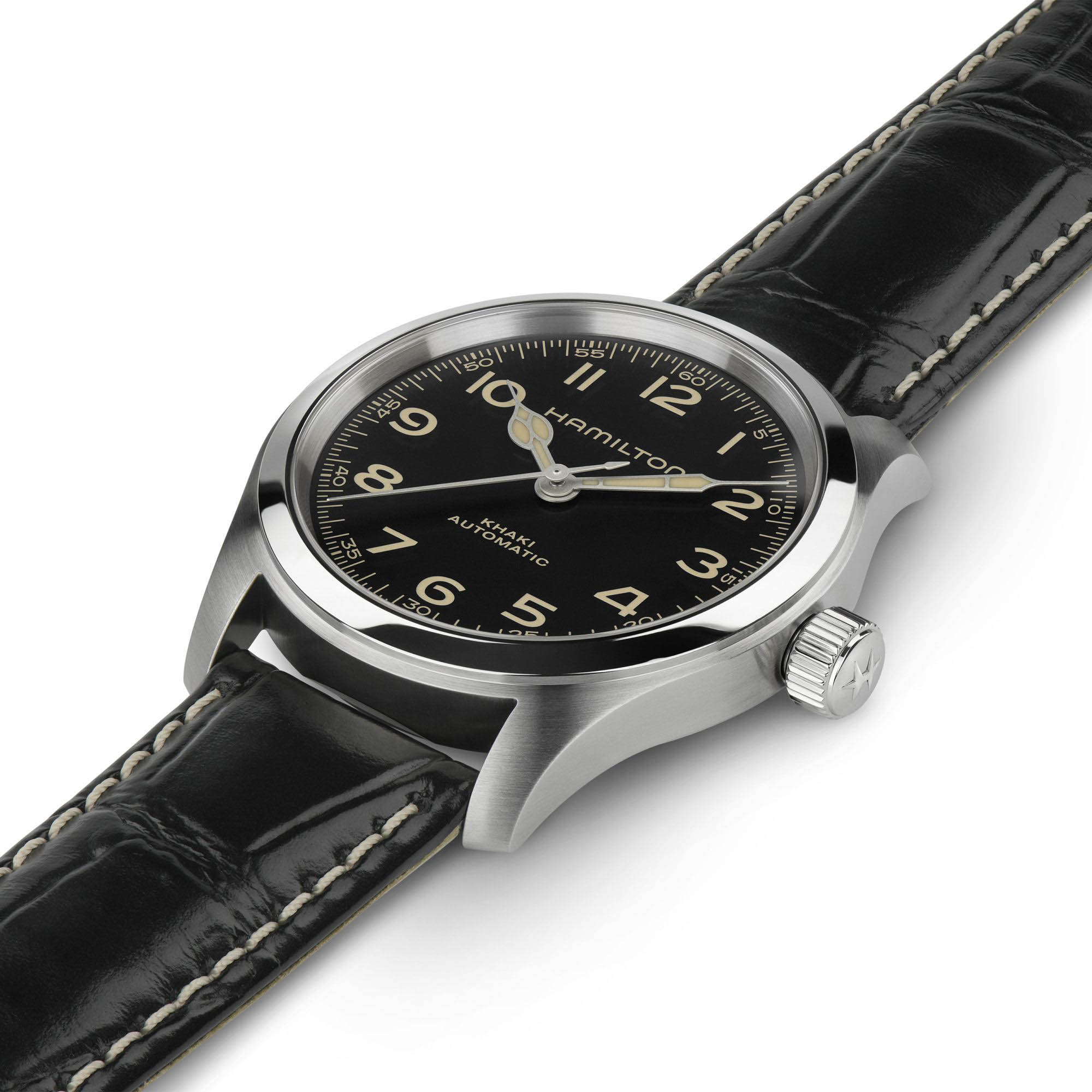 The Khaki Field Murph Auto. Одни из самых известных часов научной фантастики, известные поклонникам как "The Murphy", теперь заключены в компактный 38-миллиметровый корпус из нержавеющей стали. Ультрачитаемый черный циферблат, бежевые стрелки с люминесцентным покрытиемЛюминесцентное покрытиеПозволяет считывать показания времени в темноте. Производители наносят на стрелки, часовые индексы, безель или поверхность циферблата светонакопительный состав, дающий холодное свечение. Super-LumiNova ® в винтажном стиле и черный кожаный ремешок отражают ключевые эстетические коды своего 42-миллиметрового предшественника. Эти часы, оснащенные механизмом с автоподзаводом H-10 и обладающие 80-часовым запасом хода, покорят сердца тех, кто любит часы меньшего размера.
