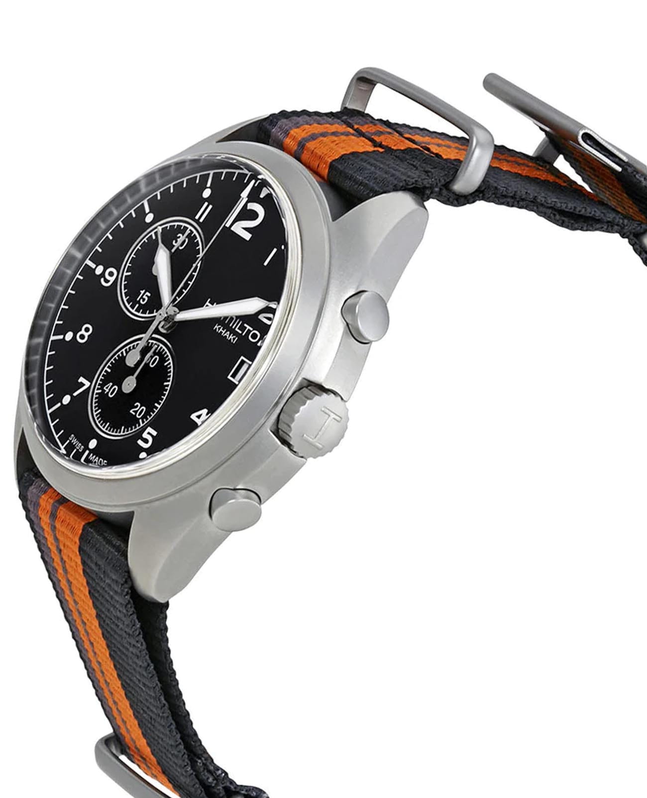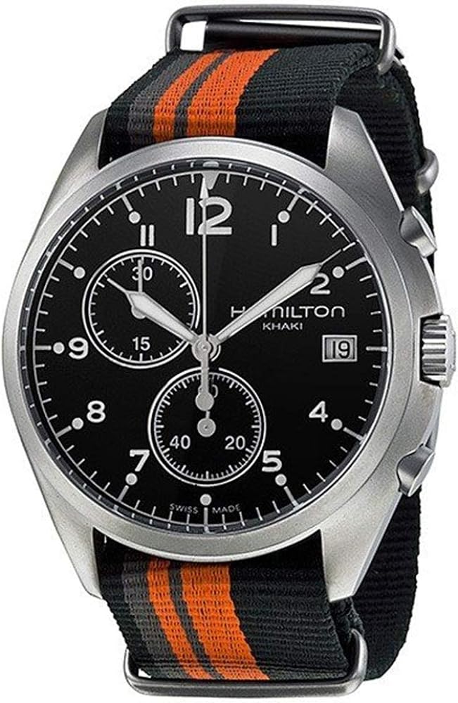 Мужские швейцарские часы-хронографХронографФункция позволяет измерять отрезки времени с особой точностью: часы, минуты, секунды. Верным признаком хронографа является наличие на циферблате 3 дополнительных окошек-счётчиков. с секундомеромСекундомерСекундоме́р — прибор, способный измерять интервалы времени с точностью до долей секунды. и надёжным кварцевым механизмом Hamilton Khaki Aviation Pilot Pioneer Chrono Quartz H76552933. Сапфировое стеклоСапфировое стеклоПрочный и надёжный материал из кристалла сапфира синтетического происхождения, характеризующийся особой твёрдостью и устойчивостью к царапинам и повреждениям. устойчивое к появлению царапин, обладающее высокой прозрачностью. Класс водозащиты: 100 метров, позволит плавать, нырять и заниматься другими водными видами спорта. Корпус часов изготовлен из стали. Тканевый ремешок на стандартной застёжке. Стрелки и метки с люминесцентным покрытиемЛюминесцентное покрытиеПозволяет считывать показания времени в темноте. Производители наносят на стрелки, часовые индексы, безель или поверхность циферблата светонакопительный состав, дающий холодное свечение.. Окошко даты находится в положении 3 часа.
