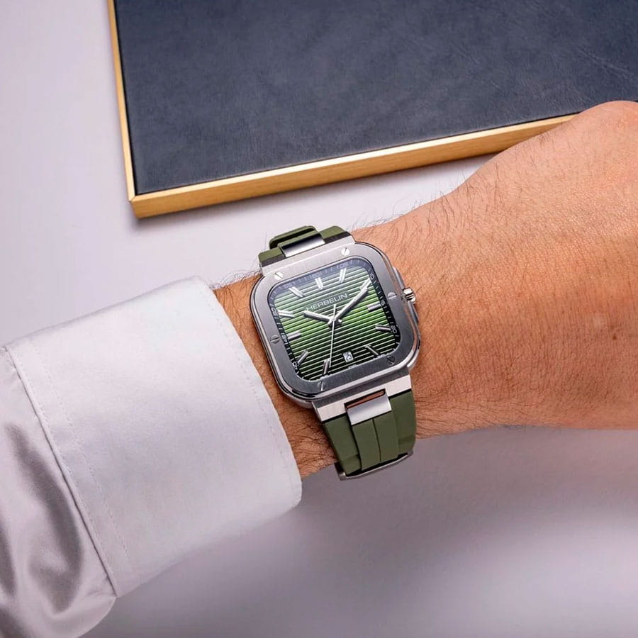 Мужские кварцевые часы Herbelin Cap Camarat 12246A116CK – отражающий идеальное сочетание современного дизайна, надёжности и функциональности. Элегантный облик станет превосходным завершением образа, наделив его индивидуальным характером. Корпус из нержавеющей стали серебристого цвета, размером 39 х 39 мм, идеально сбалансирован и элегантен. Сапфировое стеклоСапфировое стеклоПрочный и надёжный материал из кристалла сапфира синтетического происхождения, характеризующийся особой твёрдостью и устойчивостью к царапинам и повреждениям. защищает циферблат от царапин и устойчивое к механическим повреждениям. БезельБезельВнешний ободок, закрепляющий стекло. В спортивных часах так называется поворотное кольцо с делениями на циферблате, выполняет роль таймера – замеряет отрезки времени на шкале. Неподвижный безель – элемент декора. Однонаправленно вращающийся безель на дайверских часах позволяет фиксировать моменты погружения и выныривания на поверхность. украшен винтами, заводная головка с защитой. Окошко даты находится в положении 6 часов. Стрелки и метки с люминесцентным покрытиемЛюминесцентное покрытиеПозволяет считывать показания времени в темноте. Производители наносят на стрелки, часовые индексы, безель или поверхность циферблата светонакопительный состав, дающий холодное свечение.. Силиконовый ремешок на стандартной застежке обеспечивает комфортное ношение. Водозащита 100 метров позволит плавать, нырять и заниматься другими водными видами спорта. Эта модель – отличный выбор для тех, кто ищет сочетание стиля, качества и функциональности. Часы станут не только полезным аксессуаром, но и выразительным элементом вашего имиджа.