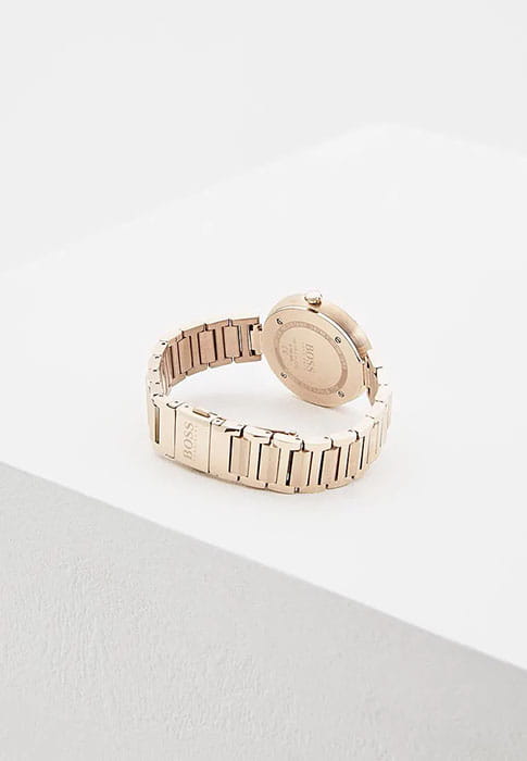 Женские немецкие часы Hugo Boss HB-200-02, кварцевый механизм с высокой точностью. Класс водозащиты: 30 метров, позволит защитить корпус от случайных брызг или капель дождя. Корпус часов изготовлен из стали, розового цвета.
