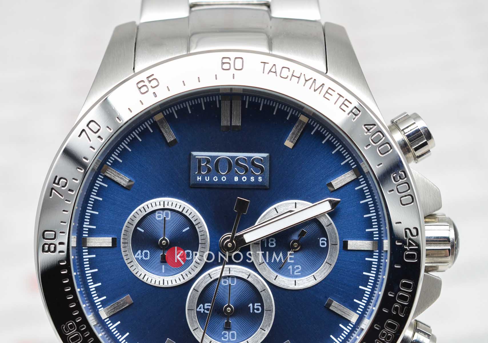 Мужские кварцевые часы Hugo Boss Ikon HB1512963 представляют собой стильный хронографХронографФункция позволяет измерять отрезки времени с особой точностью: часы, минуты, секунды. Верным признаком хронографа является наличие на циферблате 3 дополнительных окошек-счётчиков. с круглым корпусом диаметром 44 мм из нержавеющей стали, дополненным черным циферблатом с серебристыми стрелками и индексами. Модель оснащена высокоточным кварцевым механизмом с функцией хронографаХронографФункция позволяет измерять отрезки времени с особой точностью: часы, минуты, секунды. Верным признаком хронографа является наличие на циферблате 3 дополнительных окошек-счётчиков., включая 60-минутный счетчик и 24-часовой индикатор, а также тахиметрической шкалойТахиметрРазмеченная шкала, располагается на ободке или безеле часов. Тахиметр позволяет рассчитать скорость на определённом участке пути, расстояние измеряется в километрах или милях. на безэлеБезельВнешний ободок, закрепляющий стекло. В спортивных часах так называется поворотное кольцо с делениями на циферблате, выполняет роль таймера – замеряет отрезки времени на шкале. Неподвижный безель – элемент декора. Однонаправленно вращающийся безель на дайверских часах позволяет фиксировать моменты погружения и выныривания на поверхность. для расчетов скорости. Циферблат защищен устойчивым к царапинам минеральным стекломМинеральное стеклоМинеральное стекло представляет собой искусственно выращенный минерал кварца. Такое стекло отличается особой устойчивостью к повреждениям и царапинам. Уступает по некоторым качествам сапфировому стеклу., а водонепроницаемость 5 ATM (50 метров) обеспечивает защиту от брызг и дождя. Глубокий синий циферблат с люминесцентным покрытиемЛюминесцентное покрытиеПозволяет считывать показания времени в темноте. Производители наносят на стрелки, часовые индексы, безель или поверхность циферблата светонакопительный состав, дающий холодное свечение. на стрелках, обеспечивает отличную читаемость в любое время суток. Стальной браслет с раскладной застежкойРаскладная застёжкаТакой тип застёжки используется только на браслетах из металла. Она никогда не раскрывается полностью, происходит разделение на 2 и более частей. Раскладывающая застёжка снизит вероятность потери часов к минимуму. обеспечивает надежную посадку на запястье.