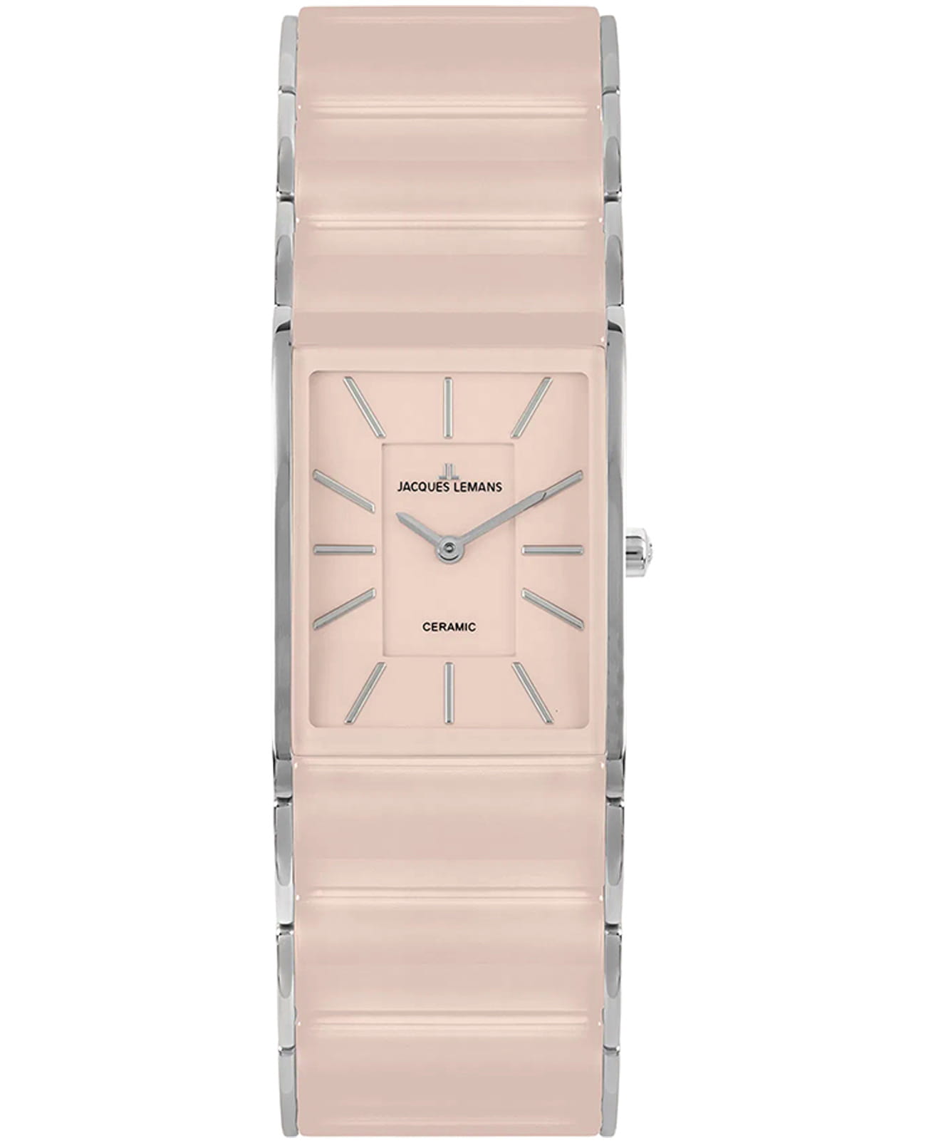 Женские наручные часы Jacques Lemans Dublin 1-1940P кварцевый механизм с высокой точностью. Минеральное стеклоМинеральное стеклоМинеральное стекло представляет собой искусственно выращенный минерал кварца. Такое стекло отличается особой устойчивостью к повреждениям и царапинам. Уступает по некоторым качествам сапфировому стеклу. с сапфировым напылением устойчивое к мелким механическим повреждениям. Элегантный облик позволяют носить часы как со строгой рубашкой, так и с повседневными джинсами. Прямоугольный корпус из нержавеющей стали размером 24x28 мм идеально сбалансирован и элегантен. Класс водозащиты: 50 метров позволит защитить корпус от случайных брызг или капель дождя. Браслет из стали с керамическими вставками на застёжке-бабочке с кнопкамиЗастёжка "бабочка"Такой вид застёжки дополняется предохранителями, помогающими избежать случайного раскрытия браслета. Обладают изящным исполнением. обеспечивает комфортное ношение. Керамический безельБезельВнешний ободок, закрепляющий стекло. В спортивных часах так называется поворотное кольцо с делениями на циферблате, выполняет роль таймера – замеряет отрезки времени на шкале. Неподвижный безель – элемент декора. Однонаправленно вращающийся безель на дайверских часах позволяет фиксировать моменты погружения и выныривания на поверхность.. Продуманный дизайн рисок и стрелок позволяет с легкостью определять время. Это аксессуар для женщины, которая ценит классический стиль и функциональность.