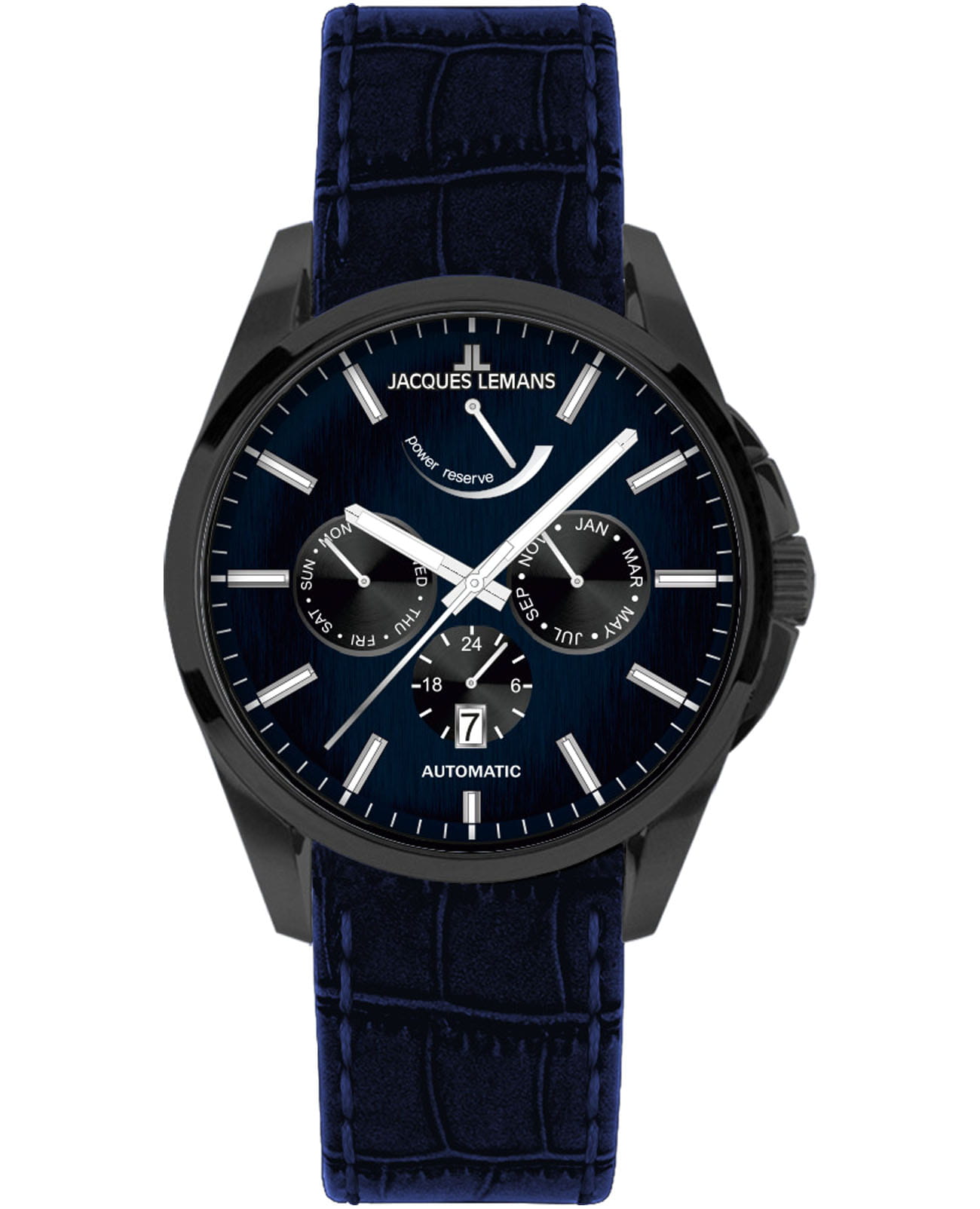 Мужские механические часы с автоподзаводом Jacques Lemans 1-2204L – лаконичная красота и изысканная элегантность. Оригинальная модель с классическим оформлением станет превосходным завершением образа, наделив его индивидуальным характером. Корпус выполнен из нержавеющей стали с PVD-покрытиемPVDУльтратонкое покрытие наносится в технике вакуумного напыления, сочетает в себе нитрид титана особой прочности со слоем золота или оксида хрома. Несёт в себе декоративную или защитную функцию. черного цвета, диаметром 44 мм, что обеспечивает долговечность и утончённый внешний вид. Минеральное стеклоМинеральное стеклоМинеральное стекло представляет собой искусственно выращенный минерал кварца. Такое стекло отличается особой устойчивостью к повреждениям и царапинам. Уступает по некоторым качествам сапфировому стеклу. с сапфировым напылением защищает циферблат от царапин. Кожаный ремешок на стандартной застёжке обеспечивает комфортное ношение. Водозащита 100 метров позволит плавать, нырять и заниматься другими водными видами спорта. Стрелки и метки с люминесцентным покрытиемЛюминесцентное покрытиеПозволяет считывать показания времени в темноте. Производители наносят на стрелки, часовые индексы, безель или поверхность циферблата светонакопительный состав, дающий холодное свечение. позволяющие легко определять время даже в темноте. 12-ти и 24-х часовой формат времени. День недели и месяц вынесены на отдельные циферблаты. Окошко даты находится в положении 6 часов. Рифленая заводная головка с защитой. Это аксессуар для мужчины, который ценит классический стиль и функциональность.