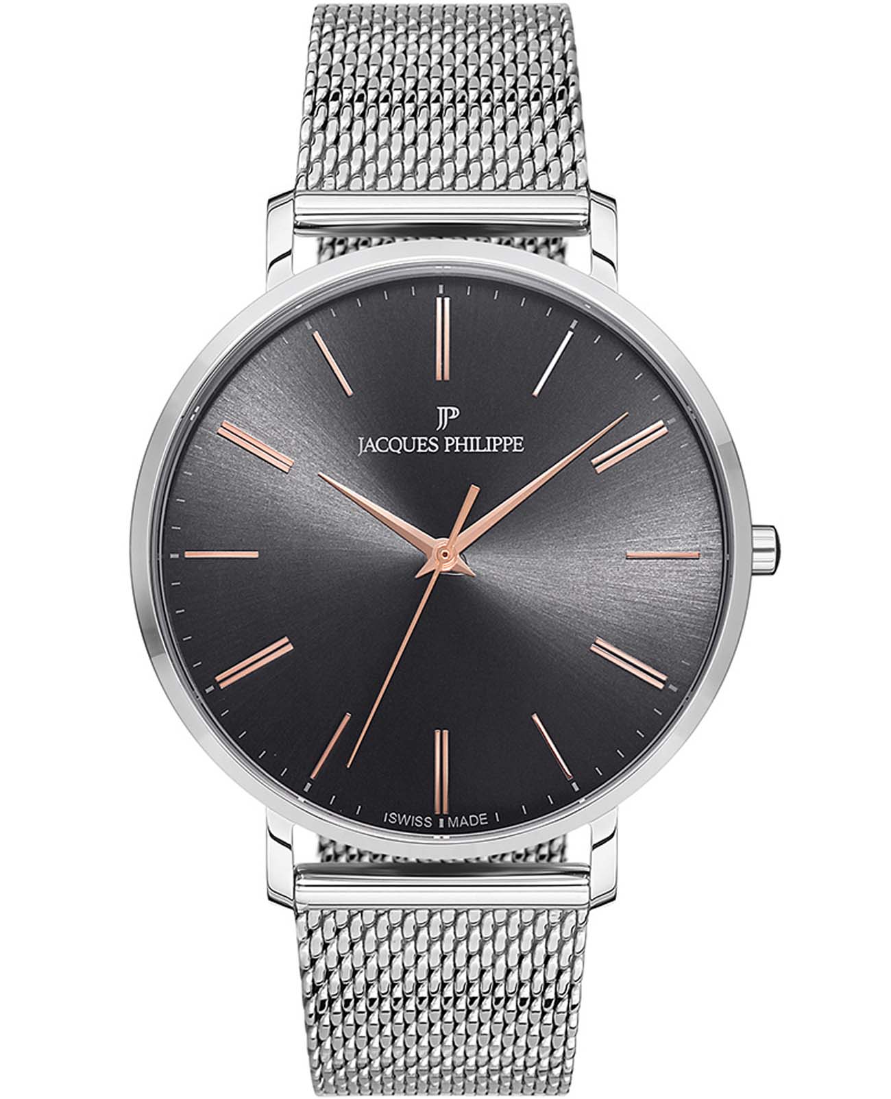 Швейцарские мужские часы Jacques Philippe Base JPQGS071246, кварцевый механизм с высокой точностью. Сапфировое стеклоСапфировое стеклоПрочный и надёжный материал из кристалла сапфира синтетического происхождения, характеризующийся особой твёрдостью и устойчивостью к царапинам и повреждениям. устойчивое к появлению царапин, обладающее высокой прозрачностью. Корпус часов изготовлен из нержавеющей стали. Класс водозащиты: 30 метров, позволит защитить корпус от случайных брызг или капель дождя. Стальной браслет на раскладном замкеРаскладной замокДанный вариант застежки используется только на часах с металлическим браслетом. Отличительная особенность такого крепления в том, что длина браслета становится универсальной и вы можете самостоятельно отрегулировать нужный вам размер – застежка просто двигается по браслету часов..