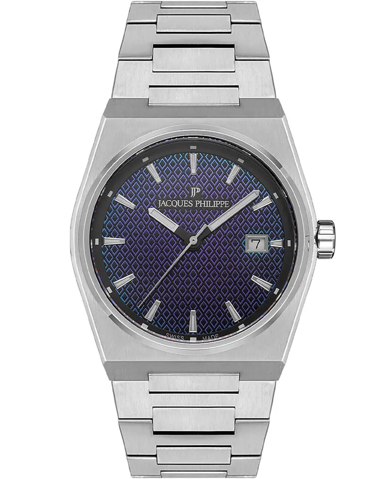 Швейцарские мужские часы Jacques Philippe Aurora JPQGS4213X6RBW, кварцевый механизм с высокой точностью. Сапфировое стеклоСапфировое стеклоПрочный и надёжный материал из кристалла сапфира синтетического происхождения, характеризующийся особой твёрдостью и устойчивостью к царапинам и повреждениям. устойчивое к появлению царапин, обладающее высокой прозрачностью. Корпус часов изготовлен из нержавеющей стали. Класс водозащиты: 50 метров, позволит защитить корпус от случайных брызг или капель дождя. Стальной браслет на застёжке-бабочке с кнопкамиЗастёжка "бабочка"Такой вид застёжки дополняется предохранителями, помогающими избежать случайного раскрытия браслета. Обладают изящным исполнением. . Окошко даты находится в положении 3 часа. Стрелки и метки с люминесцентным покрытиемЛюминесцентное покрытиеПозволяет считывать показания времени в темноте. Производители наносят на стрелки, часовые индексы, безель или поверхность циферблата светонакопительный состав, дающий холодное свечение..