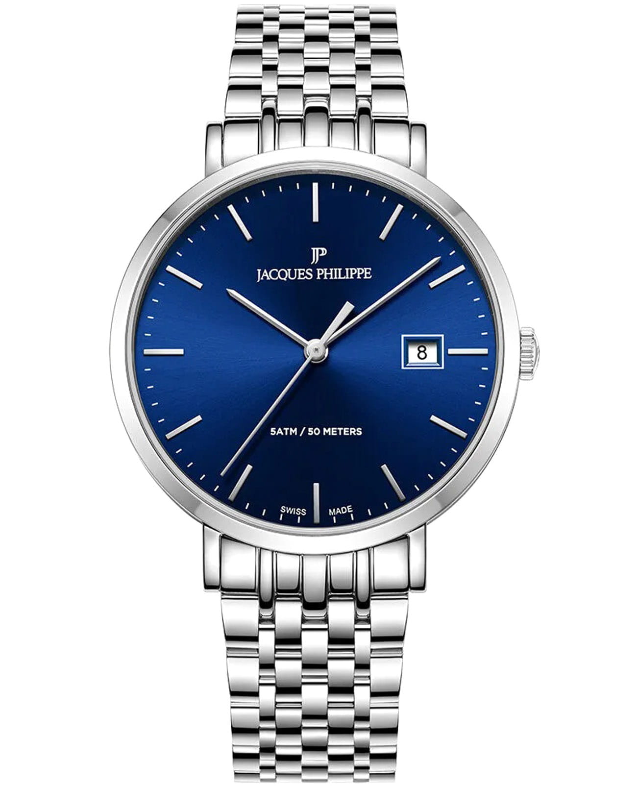 Швейцарские мужские часы Jacques Philippe Albunea JPQGS951336 кварцевый механизм с высокой точностью. Прочное сапфировое стеклоСапфировое стеклоПрочный и надёжный материал из кристалла сапфира синтетического происхождения, характеризующийся особой твёрдостью и устойчивостью к царапинам и повреждениям. устойчивое к царапинам и механическим повреждениям. Циферблат синего цвета украшен классическими стрелками и метками гармонично дополняющие общий дизайн модели. Элегантный корпус изготовлен из нержавеющей стали, диаметром 39 мм, что делает их устойчивыми к внешним воздействиям и придает благородный вид. Стальной браслет на застёжке-бабочке с кнопкамиЗастёжка "бабочка"Такой вид застёжки дополняется предохранителями, помогающими избежать случайного раскрытия браслета. Обладают изящным исполнением. обеспечивает комфортное и безопасное ношение. Окошко даты находится в положении 3 часа. Класс водозащиты: 50 метров позволит защитить корпус от случайных брызг или капель дождя. Эти часы станут идеальным выбором для мужчин, ценящих стиль, качество и функциональность.