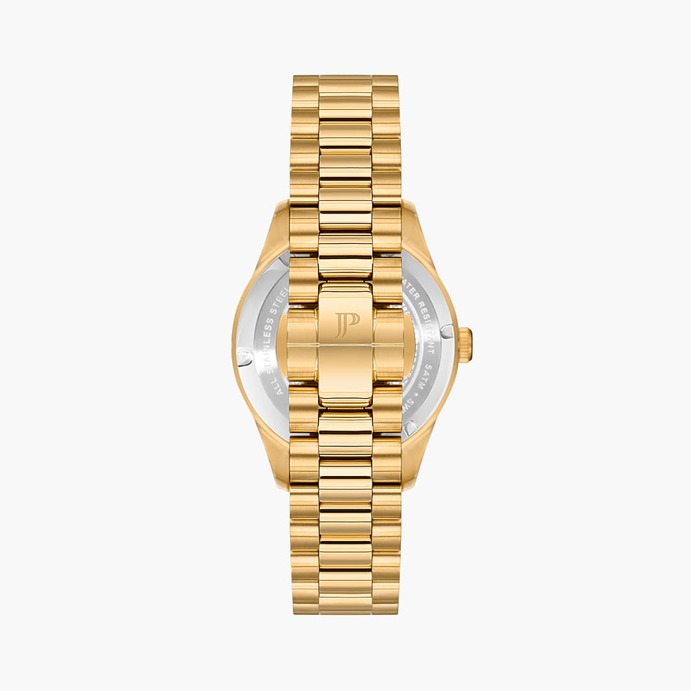 Швейцарские женские часы Jacques Philippe Solis JPQLS2423X4, кварцевый механизм с высокой точностью. Сапфировое стеклоСапфировое стеклоПрочный и надёжный материал из кристалла сапфира синтетического происхождения, характеризующийся особой твёрдостью и устойчивостью к царапинам и повреждениям. устойчивое к появлению царапин, обладающее высокой прозрачностью. Корпус и браслет часов изготовлены из нержавеющей стали с IP-покрытиемIP-покрытиеМетод ионного напыления. Демонстрирует повышенную устойчивость к истиранию, окислению и химическим веществам. Под воздействием высокого давления и температуры около 1500°C молекулы металла надёжно соединяются с частицами корпуса часов.. Класс водозащиты: 50 метров, позволит защитить корпус от случайных брызг или капель дождя. Стальной браслет на застёжке-бабочке с кнопкамиЗастёжка "бабочка"Такой вид застёжки дополняется предохранителями, помогающими избежать случайного раскрытия браслета. Обладают изящным исполнением. . Окошко даты находится в положении 3 часа. Стрелки и метки с люминесцентным покрытиемЛюминесцентное покрытиеПозволяет считывать показания времени в темноте. Производители наносят на стрелки, часовые индексы, безель или поверхность циферблата светонакопительный состав, дающий холодное свечение.. Циферблат инкрустирован кристаллами.
