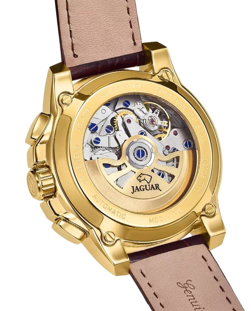 Jaguar Le Chronographe J976/1 — это мужские часы, сочетающие классический дизайн с современными функциями. Корпус диаметром 45 мм выполнен из нержавеющей стали с PVD-покрытиемPVDУльтратонкое покрытие наносится в технике вакуумного напыления, сочетает в себе нитрид титана особой прочности со слоем золота или оксида хрома. Несёт в себе декоративную или защитную функцию., что обеспечивает прочность и элегантный внешний вид. Сапфировое стеклоСапфировое стеклоПрочный и надёжный материал из кристалла сапфира синтетического происхождения, характеризующийся особой твёрдостью и устойчивостью к царапинам и повреждениям. защищает циферблат от царапин и повреждений. Изысканный циферблат со стильными индексами и стрелками подчёркивает утончённый стиль. Часы с хронографом. Часы оснащены стильным кожаным ремешком и классической застежкой, идеальной системой крепления для кожаного ремешка, которая гарантирует, что часы будут надежно оставаться на месте в любое время. Водозащита до 10 ATM (100 метров) делает часы подходящими для плавания и занятий водными видами спорта. Jaguar J976/1 — идеальный выбор для мужчин, которые ценят швейцарское качество и современные технологии.