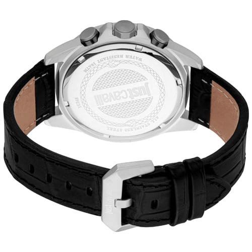 JUST CAVALLI JC1G348L0025 — стильные итальянские часы с функцией хронографаХронографФункция позволяет измерять отрезки времени с особой точностью: часы, минуты, секунды. Верным признаком хронографа является наличие на циферблате 3 дополнительных окошек-счётчиков., которые сочетают в себе элегантность и современный функционал. Круглый корпус диаметром 45 мм выполнен из нержавеющей стали, толщина корпуса составляет 11 мм, что придает модели выразительный внешний вид и надежную защиту от внешних воздействий. Часы оснащены кварцевым механизмом, также обладают функцией отображения даты, что делает их удобными для ежедневного использования. Минеральное стеклоМинеральное стеклоМинеральное стекло представляет собой искусственно выращенный минерал кварца. Такое стекло отличается особой устойчивостью к повреждениям и царапинам. Уступает по некоторым качествам сапфировому стеклу. защищает часы от царапин, а водозащита 100 метров идеально подходит для повседневного ношения. Стрелки с люминесцентным покрытиемЛюминесцентное покрытиеПозволяет считывать показания времени в темноте. Производители наносят на стрелки, часовые индексы, безель или поверхность циферблата светонакопительный состав, дающий холодное свечение.. Кожаный ремешок на стандартной застёжке обеспечивает комфортное ношение.