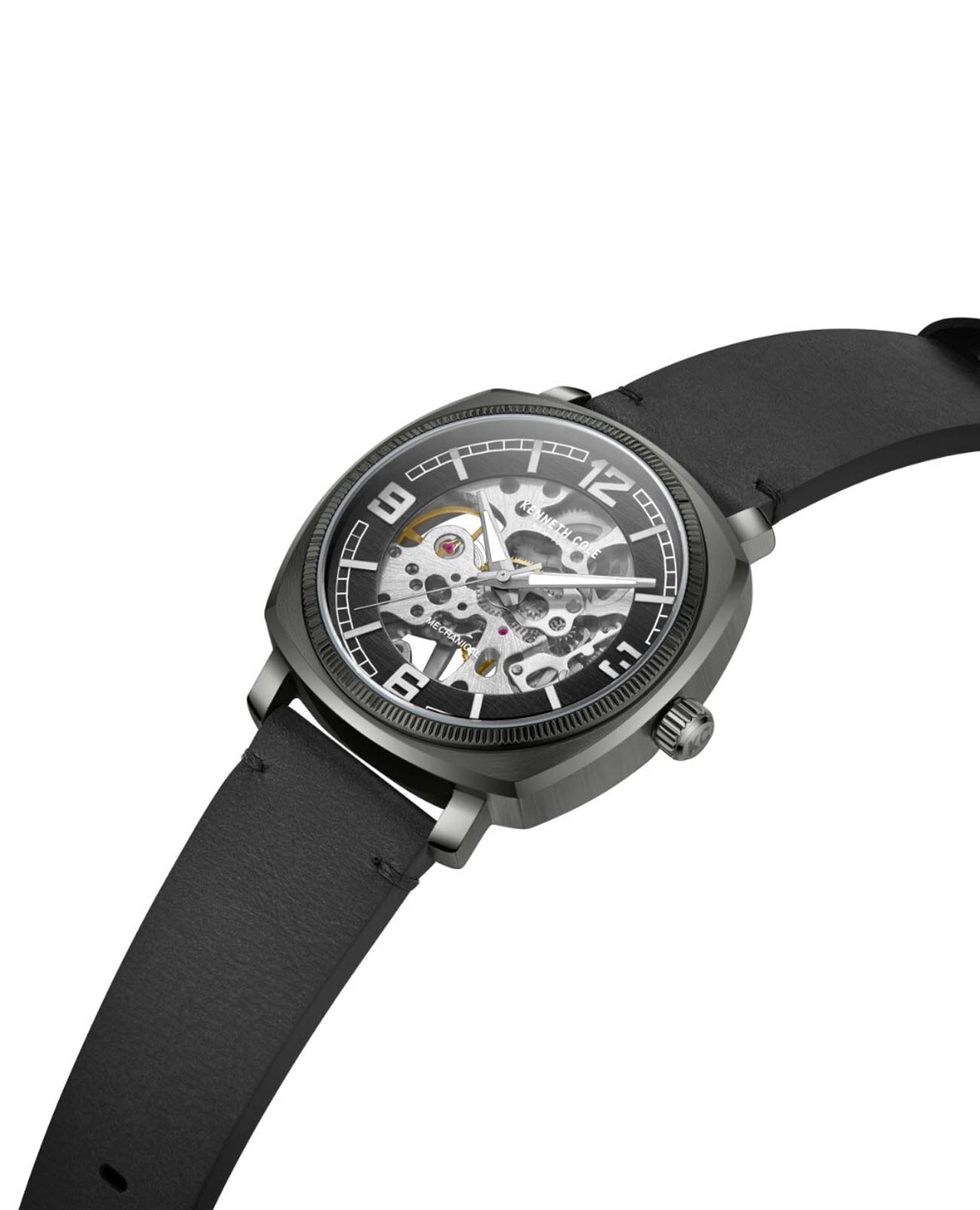Мужские механические часы-скелетоны с минеральным стекломМинеральное стеклоМинеральное стекло представляет собой искусственно выращенный минерал кварца. Такое стекло отличается особой устойчивостью к повреждениям и царапинам. Уступает по некоторым качествам сапфировому стеклу. Kenneth Cole Mechanical KCWGE0020703, механический механизм (автоматический калибр) с высокой точностью. Корпус часов изготовлен из стали. Стрелки с люминесцентным покрытиемЛюминесцентное покрытиеПозволяет считывать показания времени в темноте. Производители наносят на стрелки, часовые индексы, безель или поверхность циферблата светонакопительный состав, дающий холодное свечение.. Класс водозащиты: 30 метров, позволит защитить корпус от случайных брызг или капель дождя. Кожаный ремешок на стандартной застежке.