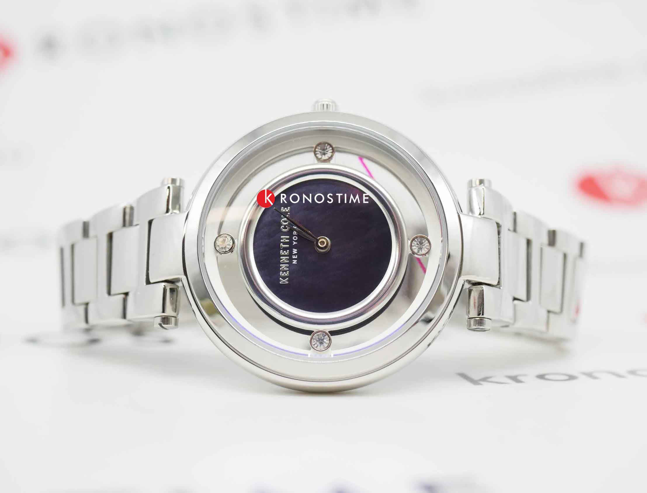 Женские кварцевые часы с минеральным стекломМинеральное стеклоМинеральное стекло представляет собой искусственно выращенный минерал кварца. Такое стекло отличается особой устойчивостью к повреждениям и царапинам. Уступает по некоторым качествам сапфировому стеклу. Kenneth Cole New York KCWLG0027002, кварцевый механизм с высокой точностью. Класс водозащиты: 30 метров, позволит защитить корпус от случайных брызг или капель дождя. Корпус часов изготовлен из стали. Стальной браслет на раскладной застёжкеРаскладная застёжкаТакой тип застёжки используется только на браслетах из металла. Она никогда не раскрывается полностью, происходит разделение на 2 и более частей. Раскладывающая застёжка снизит вероятность потери часов к минимуму.. Циферблат инкрустирован кристаллами.
