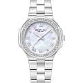 Женские кварцевые часы Kenneth Cole — это элегантный и выразительный аксессуар. Корпус диаметром 33 мм выполнен из нержавеющей стали 316L. Циферблат светло-перламутрового цвета оформлен индексами и украшен цирконами. Циферблат защищён минеральным стекломМинеральное стеклоМинеральное стекло представляет собой искусственно выращенный минерал кварца. Такое стекло отличается особой устойчивостью к повреждениям и царапинам. Уступает по некоторым качествам сапфировому стеклу.. Часы оснащены стальным браслетом на раскладной застёжкеРаскладная застёжкаТакой тип застёжки используется только на браслетах из металла. Она никогда не раскрывается полностью, происходит разделение на 2 и более частей. Раскладывающая застёжка снизит вероятность потери часов к минимуму.. Водонепроницаемость 30 м позволяет использовать часы в повседневных условиях. Идеальный выбор для тех, кто ценит стиль, блеск и американское качество.