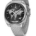 Российские мужские механические часы Космос из коллекции ЦУП с автоподзаводом оснащены надежным механизмом TMI. Корпус из нержавеющей стали шириной 44 мм и шириной выступа 22 мм защищен прочным минеральным стекломМинеральное стеклоМинеральное стекло представляет собой искусственно выращенный минерал кварца. Такое стекло отличается особой устойчивостью к повреждениям и царапинам. Уступает по некоторым качествам сапфировому стеклу.. Модель имеет класс водозащиты 100 метров, позволит плавать, и заниматься другими водными видами спорта. Черный циферблат с индексами дополнен функцией отображения даты. Часы комплектуются браслетом из нержавеющей стали с миланским плетением на раскладном замкеРаскладной замокДанный вариант застежки используется только на часах с металлическим браслетом. Отличительная особенность такого крепления в том, что длина браслета становится универсальной и вы можете самостоятельно отрегулировать нужный вам размер – застежка просто двигается по браслету часов.. Классический дизайн и надежный механизм делают эти часы превосходным выбором для современного мужчины, ценящего стиль и функциональность. Серебристый цвет корпуса подчеркивает элегантность модели.