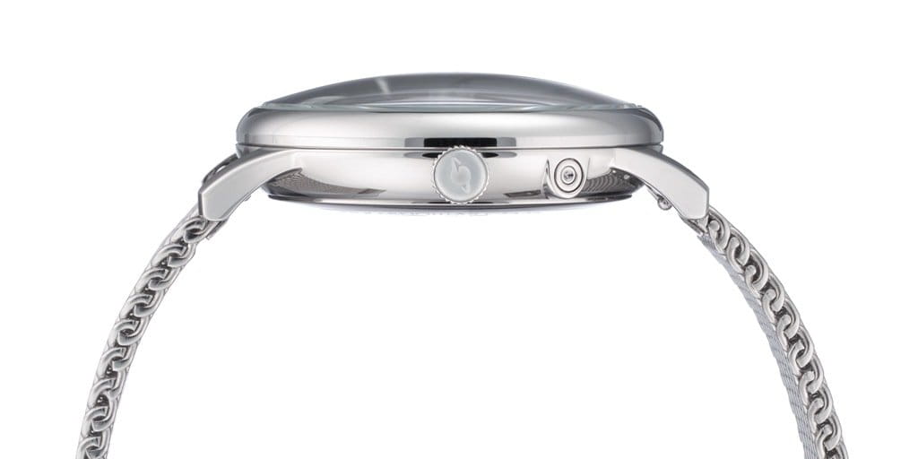 Российские мужские кварцевые часы Космос K 067.10.31 из коллекции Сатурн оснащены механизмом Miyota. Круглый корпус из нержавеющей стали 316L диаметром 41 мм и толщиной 13 мм защищен минеральным стекломМинеральное стеклоМинеральное стекло представляет собой искусственно выращенный минерал кварца. Такое стекло отличается особой устойчивостью к повреждениям и царапинам. Уступает по некоторым качествам сапфировому стеклу.. Черный циферблат с серыми элементами и градиентной шлифовкой в стиле солнечных лучей украшен изготовленными вручную индексами, крепящимися на двух штифтах. Часы имеют функции отображения даты центральной стрелкой, дня недели и индикатора фаз луны. Часовая, минутная стрелки, круг по краю циферблата и линия вокруг окошка индикатора фаз луны имеют люминесцентное покрытиеЛюминесцентное покрытиеПозволяет считывать показания времени в темноте. Производители наносят на стрелки, часовые индексы, безель или поверхность циферблата светонакопительный состав, дающий холодное свечение., которое светится в темноте, создавая эффект ореола вокруг Земли. На задней крышке выгравирован фантазийный сюжет — космическая станция будущего. Полированный корпус часов напоминает силуэт летающей тарелки благодаря выпуклым формам стекла и нижней части корпуса. Часы имеют водонепроницаемость 50 метров, позволит защитить корпус от случайных брызг или капель дождя. Модель комплектуется стальным браслетом миланского плетения на раскладном замкеРаскладной замокДанный вариант застежки используется только на часах с металлическим браслетом. Отличительная особенность такого крепления в том, что длина браслета становится универсальной и вы можете самостоятельно отрегулировать нужный вам размер – застежка просто двигается по браслету часов.. Эти часы сочетают в себе классический дизайн, современные технологии и футуристическое вдохновение, делая их идеальным выбором для ценителей точности и элегантности.