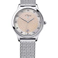 Женские швейцарские часы L'Duchen Grace D 791.15.35 M, кварцевый механизм с высокой точностью. Сапфировое стеклоСапфировое стеклоПрочный и надёжный материал из кристалла сапфира синтетического происхождения, характеризующийся особой твёрдостью и устойчивостью к царапинам и повреждениям. устойчивое к появлению царапин, обладающее высокой прозрачностью. Корпус часов выполнен из нержавеющей стали. Окошко даты находится в положении 6 часов. Класс водозащиты: 50 метров, позволит защитить корпус от случайных брызг или капель дождя. Стальной браслет миланского плетения на раскладном замкеРаскладной замокДанный вариант застежки используется только на часах с металлическим браслетом. Отличительная особенность такого крепления в том, что длина браслета становится универсальной и вы можете самостоятельно отрегулировать нужный вам размер – застежка просто двигается по браслету часов..