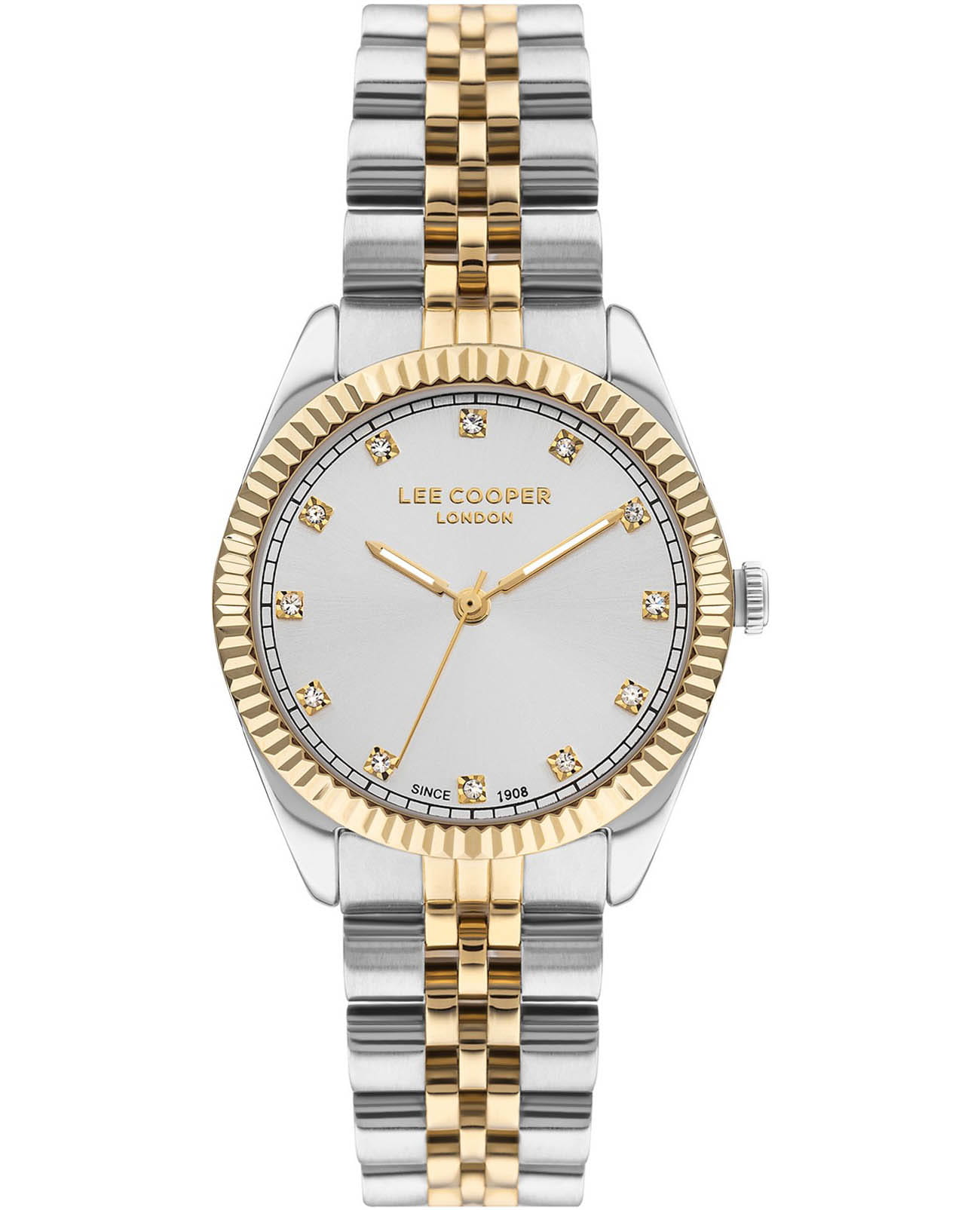 Женские наручные часы Lee Cooper LC07681.230 — это элегантная модель с утончённым дизайном. Корпус диаметром 32 мм выполнен из суперметалла с безелемБезельВнешний ободок, закрепляющий стекло. В спортивных часах так называется поворотное кольцо с делениями на циферблате, выполняет роль таймера – замеряет отрезки времени на шкале. Неподвижный безель – элемент декора. Однонаправленно вращающийся безель на дайверских часах позволяет фиксировать моменты погружения и выныривания на поверхность. с IP-покрытиемIP-покрытиеМетод ионного напыления. Демонстрирует повышенную устойчивость к истиранию, окислению и химическим веществам. Под воздействием высокого давления и температуры около 1500°C молекулы металла надёжно соединяются с частицами корпуса часов., что придаёт часам изысканный вид. Серебристый циферблат украшен изящными вставками из циркония в виде меток времени и стрелками, обеспечивая удобное считывание времени. Циферблат защищён минеральным стекломМинеральное стеклоМинеральное стекло представляет собой искусственно выращенный минерал кварца. Такое стекло отличается особой устойчивостью к повреждениям и царапинам. Уступает по некоторым качествам сапфировому стеклу., устойчивым к царапинам. Часы работают на кварцевом механизме, обеспечивая точность хода. Браслет из нержавеющей стали с частичным IP-покрытиемIP-покрытиеМетод ионного напыления. Демонстрирует повышенную устойчивость к истиранию, окислению и химическим веществам. Под воздействием высокого давления и температуры около 1500°C молекулы металла надёжно соединяются с частицами корпуса часов. с раскладной застёжкойРаскладная застёжкаТакой тип застёжки используется только на браслетах из металла. Она никогда не раскрывается полностью, происходит разделение на 2 и более частей. Раскладывающая застёжка снизит вероятность потери часов к минимуму. гарантирует комфортное ношение и надёжную фиксацию на запястье. Стрелки с люминесцентным покрытиемЛюминесцентное покрытиеПозволяет считывать показания времени в темноте. Производители наносят на стрелки, часовые индексы, безель или поверхность циферблата светонакопительный состав, дающий холодное свечение., обеспечивающим хорошую читаемость в темноте. Водозащита 30 метров защищает часы от случайных брызг и дождя, делая их подходящими для повседневного использования.