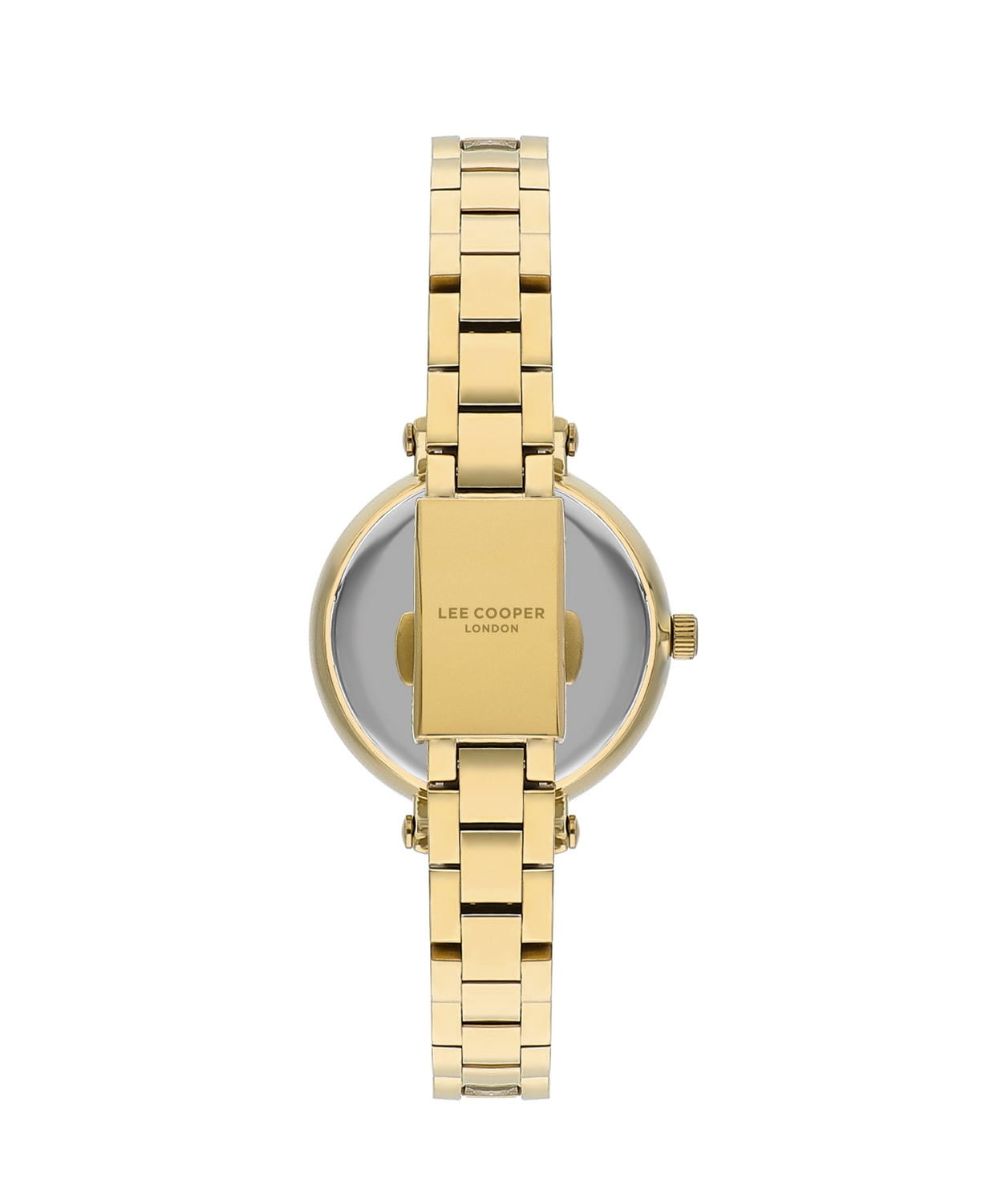Женские часы Lee Cooper LC07813.120 выполнены в классическом стиле и сочетают строгий дизайн с надёжным механизмом. Модель оснащена кварцевым механизмом , обеспечивающим точность хода и минимальное обслуживание. Корпус круглой формы имеет размер 32 мм, изготовлен из суперметалла с IP-покрытиемIP-покрытиеМетод ионного напыления. Демонстрирует повышенную устойчивость к истиранию, окислению и химическим веществам. Под воздействием высокого давления и температуры около 1500°C молекулы металла надёжно соединяются с частицами корпуса часов., гарантирует комфорт при ношении. Циферблат перламутрового цвета дополнен индексами для чёткого отсчёта времени. Защиту циферблата обеспечивает минеральное стеклоМинеральное стеклоМинеральное стекло представляет собой искусственно выращенный минерал кварца. Такое стекло отличается особой устойчивостью к повреждениям и царапинам. Уступает по некоторым качествам сапфировому стеклу., устойчивое к мелким механическим повреждениям. Изысканный стальной браслет с керамическими вставками с IP-покрытиемIP-покрытиеМетод ионного напыления. Демонстрирует повышенную устойчивость к истиранию, окислению и химическим веществам. Под воздействием высокого давления и температуры около 1500°C молекулы металла надёжно соединяются с частицами корпуса часов. на раскладной застёжкеРаскладная застёжкаТакой тип застёжки используется только на браслетах из металла. Она никогда не раскрывается полностью, происходит разделение на 2 и более частей. Раскладывающая застёжка снизит вероятность потери часов к минимуму. гарантирует комфортную посадку на запястье. Водозащита 3 АТМ позволяет использовать часы в повседневных условиях без риска повреждения от случайных брызг воды. В комплекте к часам идет дополнительный браслет в цвет часов. Это сочетание классического дизайна, прочности материалов и качества исполнения для уверенных в себе женщин.