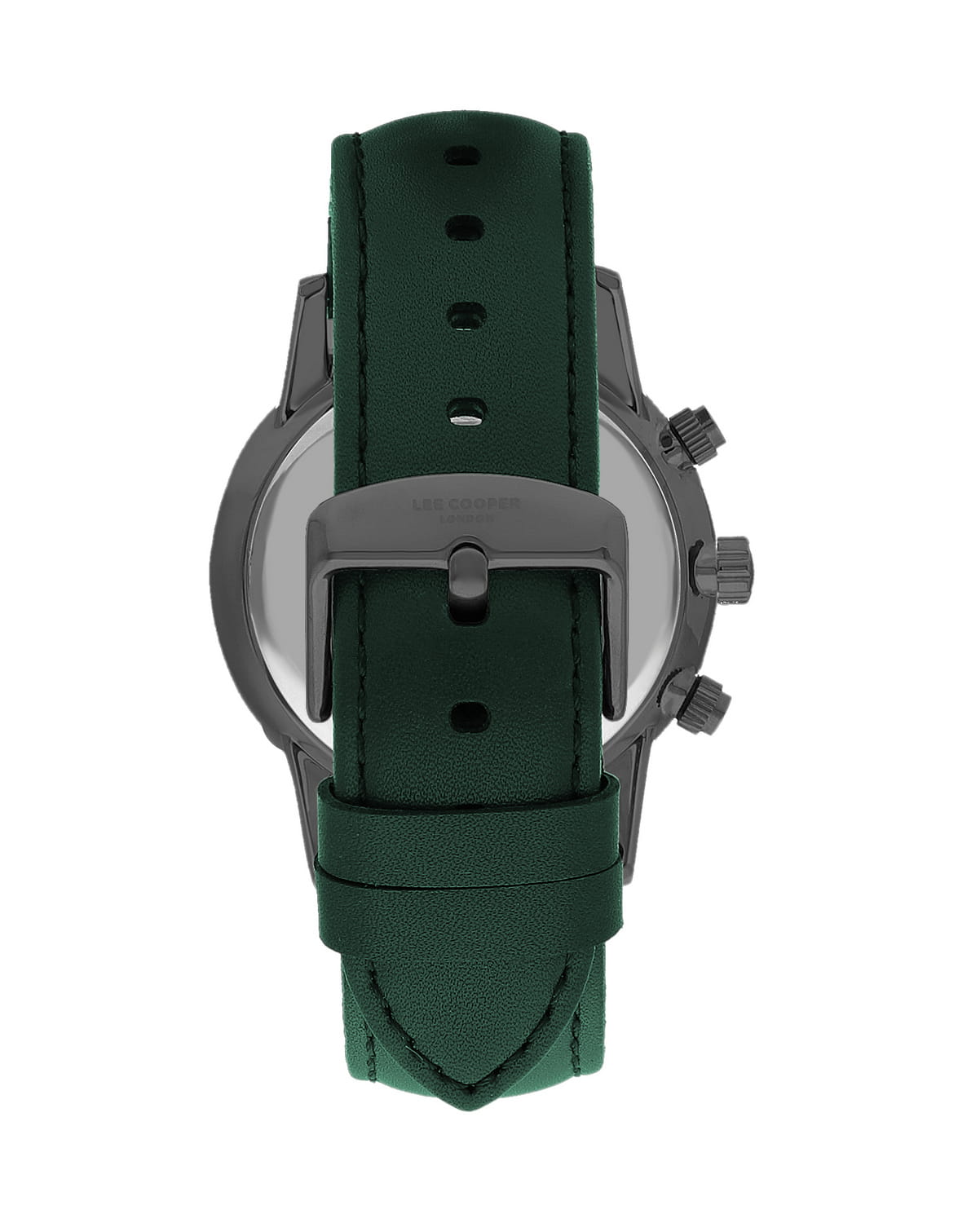 Lee Cooper LC07816.077 — элегантная модель с функциональными возможностями для повседневного использования. Корпус из суперметалла с IP-покрытиемIP-покрытиеМетод ионного напыления. Демонстрирует повышенную устойчивость к истиранию, окислению и химическим веществам. Под воздействием высокого давления и температуры около 1500°C молекулы металла надёжно соединяются с частицами корпуса часов. и диаметром 44 мм придаёт часам классический и современный вид. Циферблат защищён минеральным стекломМинеральное стеклоМинеральное стекло представляет собой искусственно выращенный минерал кварца. Такое стекло отличается особой устойчивостью к повреждениям и царапинам. Уступает по некоторым качествам сапфировому стеклу., устойчивым к царапинам, хорошо может выдержать небольшие удары и падения. Стильный циферблат оформлен изысканными индексами и дополнен окошками даты, дня недели и 24-часового индикатора, а также аккуратными метками и стрелками с люминесцентным покрытиемЛюминесцентное покрытиеПозволяет считывать показания времени в темноте. Производители наносят на стрелки, часовые индексы, безель или поверхность циферблата светонакопительный состав, дающий холодное свечение., что гарантирует читаемость даже в условиях недостаточного освещения. Часы работают на кварцевом механизме, обеспечивающем точность хода. Кожаный ремешок на стандартной застёжке гарантирует удобную посадку и надёжную фиксацию на запястье. Водозащита 50 метров защищает часы от брызг и дождя, делая их подходящими для повседневного использования.
