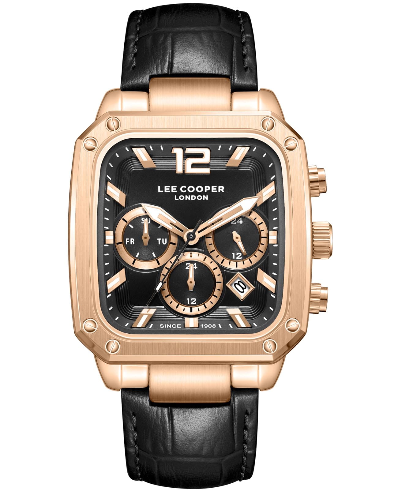 Мужские наручные часы Lee Cooper LC08184.451 оснащены кварцевым механизмом, обеспечивающий высокую точность хода и надежность. Элегантный корпус часов выполнен из суперметалла с IP-покрытиемIP-покрытиеМетод ионного напыления. Демонстрирует повышенную устойчивость к истиранию, окислению и химическим веществам. Под воздействием высокого давления и температуры около 1500°C молекулы металла надёжно соединяются с частицами корпуса часов. цвета розового золота, что делает их устойчивыми к внешним воздействиям и придает благородный вид. Циферблат украшен классическими стрелками и метками с люминесцентным покрытиемЛюминесцентное покрытиеПозволяет считывать показания времени в темноте. Производители наносят на стрелки, часовые индексы, безель или поверхность циферблата светонакопительный состав, дающий холодное свечение., гармонично дополняющим общий дизайн модели. Для защиты циферблата используется минеральное стеклоМинеральное стеклоМинеральное стекло представляет собой искусственно выращенный минерал кварца. Такое стекло отличается особой устойчивостью к повреждениям и царапинам. Уступает по некоторым качествам сапфировому стеклу., устойчивое к царапинам и механическим повреждениям. Корпус размером 39 мм x 49 мм, что делает часы заметными и подходящими. Кожаный ремешок на стандартной застёжке обеспечивает комфортное и безопасное ношение. Окошко даты находится в положении между 4 и 5 часов. Часы обладают водонепроницаемостью до 30 метров (3 АТМ), что позволяет использовать их в повседневной жизни, включая контакт с водой при мытье рук или дожде. Эти часы станут идеальным выбором для мужчин, ценящих стиль, качество и функциональность.