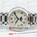Окошко даты расположено в положении 3 часа, что позволяет быстро узнать текущую дату, не отрываясь от своих дел. Особенность этой модели – наличие индикатора фаз Луны в положении «6 часов», который добавляет часам загадочности и романтичности.
