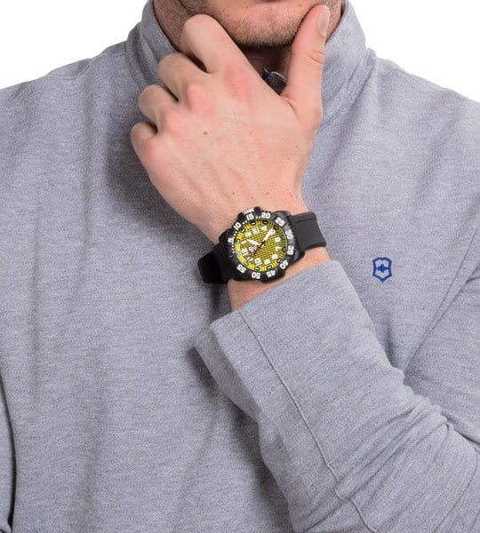Наручные часы в стиле милитари. Лимитированная серия. Безель вращается в одном направлении. Функция индикации заряда EOL. Материал корпуса: пластик, усиленный прессованный карбон; Материал браслета: полиуретановый с гравировкой; Стекло: Минеральное; Водозащита: 200 м. (WR 200).