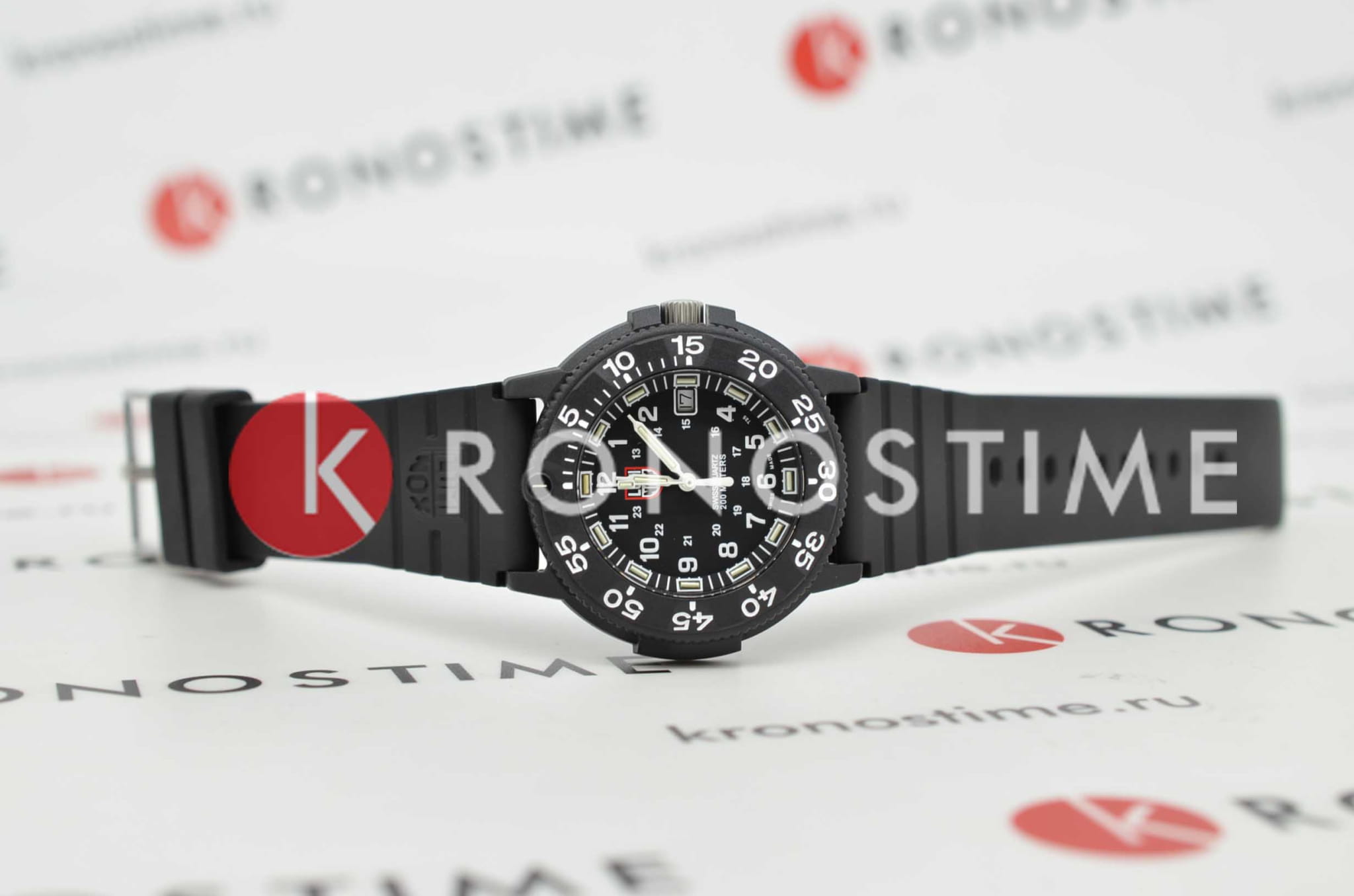 Мужские наручные часы Luminox XS.3001.F из коллекции Original Navy SEAL сочетают в себе спортивный дизайн и надежность швейцарского качества. Модель обладает круглым корпусом диаметром 43 мм, изготовленным из пластика и карбонаКарбонОт «carbon», «carbone» - углерод, углепластик - полимерный композиционный материал из переплетённых под определенным углом между собой нитей углеродного волокна, применяется для изготовления лёгких, но прочных деталей. В часах часто используют для украшения циферблатов и ремешков. Так же карбон используется в изготовлении корпусов. Такие корпуса обладают антикоррозионным свойством, не поддаются электромагнитному излучению, обладают повышенной прочностью и противоударностью., что обеспечивает высокую устойчивость к внешним воздействиям при сохранении легкости. Циферблат черного цвета украшен контрастными метками и стрелками с , гарантирующим постоянную видимость времени даже в условиях низкой освещенности. Часы оснащены кварцевым механизмом швейцарского производства, обеспечивающим точность хода ±15 секунд в месяц. Защиту циферблата обеспечивает прочное минеральное стеклоМинеральное стеклоМинеральное стекло представляет собой искусственно выращенный минерал кварца. Такое стекло отличается особой устойчивостью к повреждениям и царапинам. Уступает по некоторым качествам сапфировому стеклу., устойчивое к царапинам и механическим повреждениям. Водонепроницаемость модели достигает 20 атмосфер (200 метров), что делает их подходящими для плавания и активного отдыха на воде, включая дайвинг. Модель также оснащена безелемБезельВнешний ободок, закрепляющий стекло. В спортивных часах так называется поворотное кольцо с делениями на циферблате, выполняет роль таймера – замеряет отрезки времени на шкале. Неподвижный безель – элемент декора. Однонаправленно вращающийся безель на дайверских часах позволяет фиксировать моменты погружения и выныривания на поверхность. с односторонним вращением, что добавляет функциональности при использовании в водных условиях. Ремешок выполнен из каучука, что обеспечивает комфортное ношение в течение дня. Дополнительно часы имеют окно даты в положении «3 часа», что делает их практичными для повседневного использования. Сочетание современных технологий, надежности и стильного дизайна делает Luminox XS.3001.F идеальным выбором для ценителей качественных аксессуаров.
