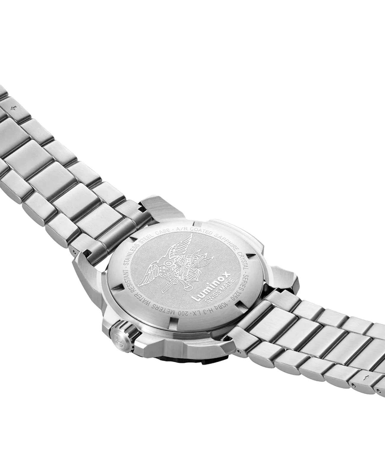Мужские наручные часы Luminox XS.3254.CB из коллекции Navy SEAL сочетают в себе спортивный дизайн и надежность швейцарского качества . Модель обладает круглым корпусом диаметром 45 мм, изготовленным из стали икарбонаКарбонОт «carbon», «carbone» - углерод, углепластик - полимерный композиционный материал из переплетённых под определенным углом между собой нитей углеродного волокна, применяется для изготовления лёгких, но прочных деталей. В часах часто используют для украшения циферблатов и ремешков. Так же карбон используется в изготовлении корпусов. Такие корпуса обладают антикоррозионным свойством, не поддаются электромагнитному излучению, обладают повышенной прочностью и противоударностью. (CARBONOX™), что обеспечивает высокую устойчивость к внешним воздействиям при сохранении легкости . Циферблат черного цвета украшен контрастными метками и стрелками с люминесцентным покрытиемЛюминесцентное покрытиеПозволяет считывать показания времени в темноте. Производители наносят на стрелки, часовые индексы, безель или поверхность циферблата светонакопительный состав, дающий холодное свечение., гарантирующим постоянную видимость времени даже в условиях низкой освещенности благодаря системе LLTLLTLLT — это автономный механизм подсветки, основанный на использовании микроскопических газонаполненных элементов. Специальные герметичные капсулы из боросиликатного стекла, интегрированные в циферблат, генерируют свечение без необходимости подключения к внешним источникам энергии. Для их работы не требуется ни дополнительный свет, ни механическое воздействие (например, нажатие кнопки). Свечение возникает благодаря химическому процессу: реакция между тритием, заключенным в капсулах, и люминофорным покрытием создает стабильное автономное освещение. Технология обеспечивает энергетическую независимость и долговечность подсветки. (микрогазовые огни) . Часы оснащены кварцевым механизмом швейцарского производства Ronda 515, обеспечивающим точность хода ±15 секунд в месяц . Защиту циферблата обеспечивает прочное сапфировое стеклоСапфировое стеклоПрочный и надёжный материал из кристалла сапфира синтетического происхождения, характеризующийся особой твёрдостью и устойчивостью к царапинам и повреждениям. с антибликовым покрытиемАнтибликовое покрытиеСлой оксида металла в 0,13-0,3 микрон, благодаря которому стекло часов не бликует и не отражает свет. Антибликовое покрытие уменьшает отражение света в 10 раз, обеспечивая отличную читаемость показателей циферблата., устойчивое к царапинам и механическим повреждениям . Водонепроницаемость модели достигает 20 атмосфер (200 метров), что делает их подходящими для плавания и активного отдыха на воде, включая дайвинг. Модель также оснащена безелемБезельВнешний ободок, закрепляющий стекло. В спортивных часах так называется поворотное кольцо с делениями на циферблате, выполняет роль таймера – замеряет отрезки времени на шкале. Неподвижный безель – элемент декора. Однонаправленно вращающийся безель на дайверских часах позволяет фиксировать моменты погружения и выныривания на поверхность. с односторонним вращением, что добавляет функциональности при использовании в водных условиях .Стальной браслет на раскладной застёжкеРаскладная застёжкаТакой тип застёжки используется только на браслетах из мета