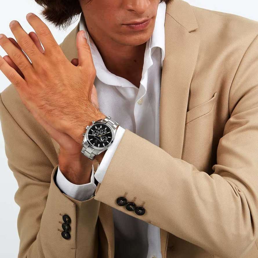 Maserati Attrazione R8853151010 — воплощение стиля и функциональности для современных мужчин, ценящих качество и элегантность. Корпус диаметром 43 мм выполнен из нержавеющей стали, обеспечивая прочность и долговечность. Минеральное стеклоМинеральное стеклоМинеральное стекло представляет собой искусственно выращенный минерал кварца. Такое стекло отличается особой устойчивостью к повреждениям и царапинам. Уступает по некоторым качествам сапфировому стеклу. надежно защищает синий циферблат с изящными рисками, придавая часам утонченный вид. Благодаря водостойкости до 50 метров (5 АТМ), эти часы станут вашим надежным спутником в любых условиях, будь то деловая встреча или активный отдых. Люминесцентное покрытиеЛюминесцентное покрытиеПозволяет считывать показания времени в темноте. Производители наносят на стрелки, часовые индексы, безель или поверхность циферблата светонакопительный состав, дающий холодное свечение. на стрелках и метках обеспечивает отличную видимость в темноте. Завершающий штрих — стальной браслет с раскладной застёжкойРаскладная застёжкаТакой тип застёжки используется только на браслетах из металла. Она никогда не раскрывается полностью, происходит разделение на 2 и более частей. Раскладывающая застёжка снизит вероятность потери часов к минимуму., который подчеркивает общий стиль, обеспечивая комфорт и надежность в носке. Циферблат украшен фирменным логотипом «Maserati». Метки в виде штрихов. Функция хронографаХронографФункция позволяет измерять отрезки времени с особой точностью: часы, минуты, секунды. Верным признаком хронографа является наличие на циферблате 3 дополнительных окошек-счётчиков. и дата добавляют практичности, делая часы не только стильным, но и функциональным аксессуаром.
